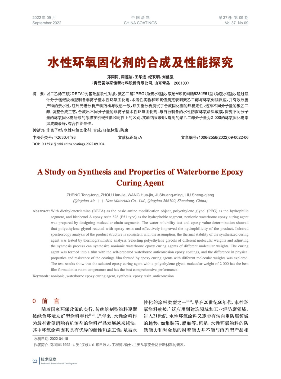 本文系作者@鄭同同,周蓮潔,王華進,紀雙明,劉盛強 授權(quán)中國涂料網(wǎng)發(fā)表,并經(jīng)中國涂料網(wǎng)編輯,未經(jīng)允許不得轉(zhuǎn)載,如需轉(zhuǎn)載請聯(lián)系chinacoatingnet@vip.163.com