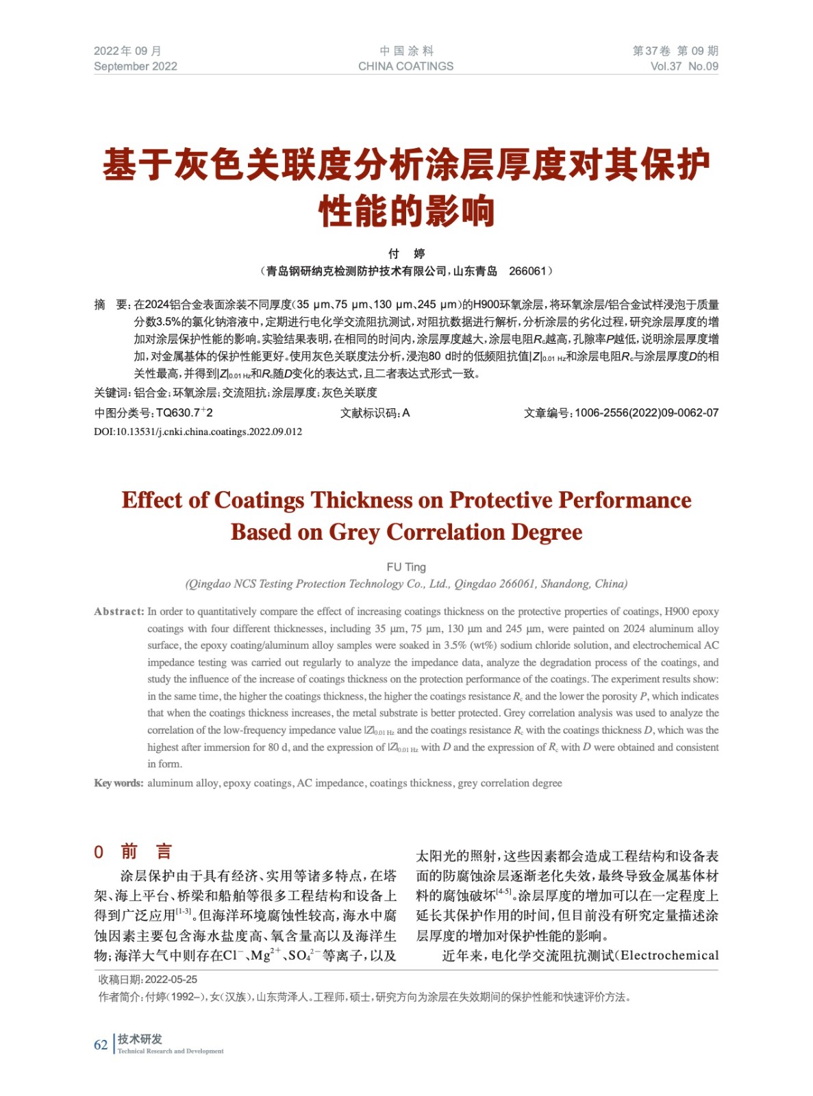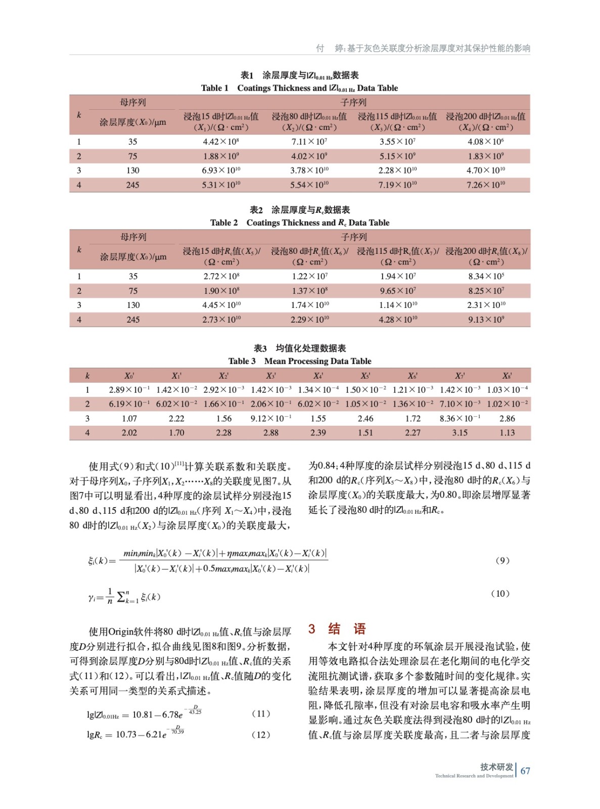 基于灰色關(guān)聯(lián)度分析涂層厚度對其保護(hù)性能的影響