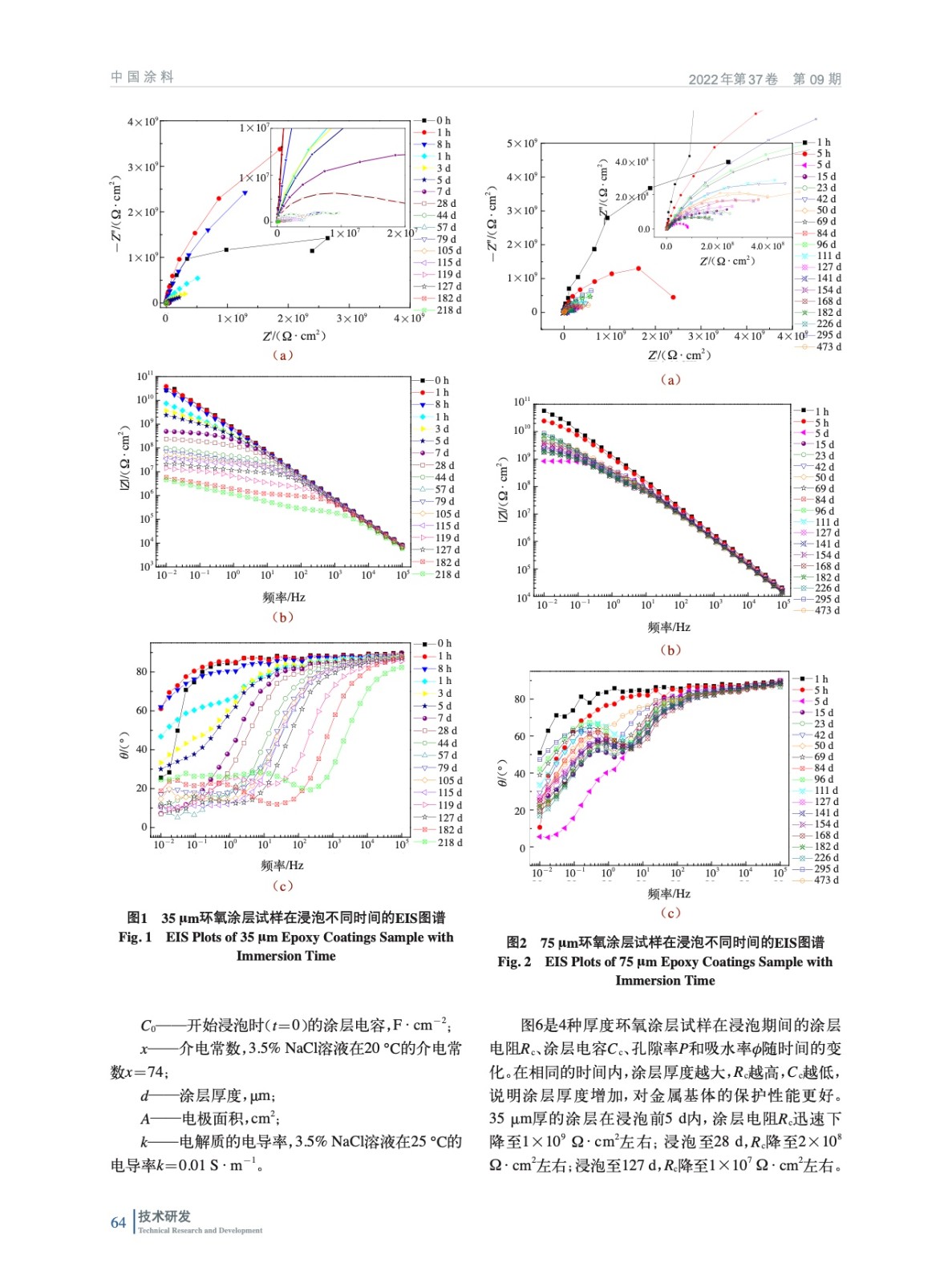 摘要:在2024鋁合金表面涂裝不同厚度的H900環(huán)氧涂層,將環(huán)氧涂層/鋁合金試樣浸泡于質(zhì)量分?jǐn)?shù)3.5%的氯化鈉溶液中,定期進(jìn)行電化學(xué)交流阻抗測試,對阻抗數(shù)據(jù)進(jìn)行解析,分析涂層的劣化過程,研究涂層厚度的增加對涂層保護(hù)性能的影響。實(shí)驗(yàn)結(jié)果表明,在相同的時(shí)間內(nèi),涂層厚度越大,涂層電阻Rc越高,孔隙率P越低,說明涂層厚度增加,對金屬基體的保護(hù)性能更好。