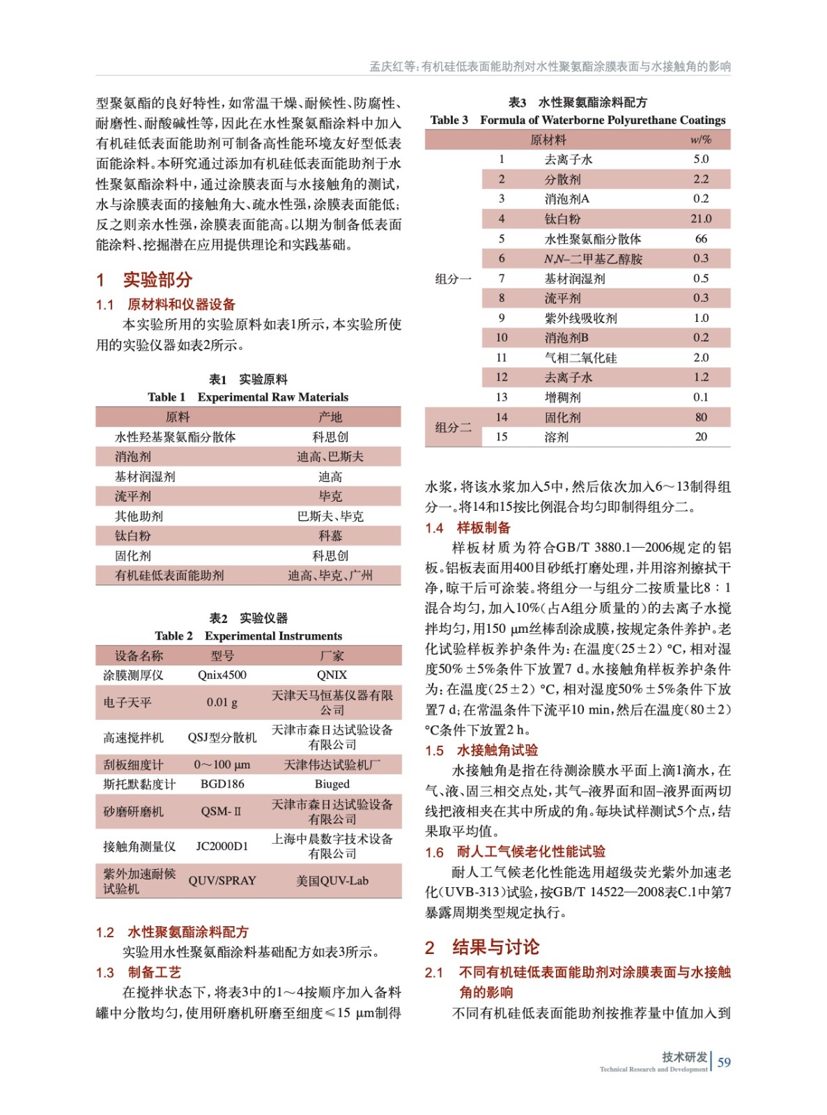 有機硅低表面能助劑對水性聚氨酯涂膜表面與水接觸角的影響