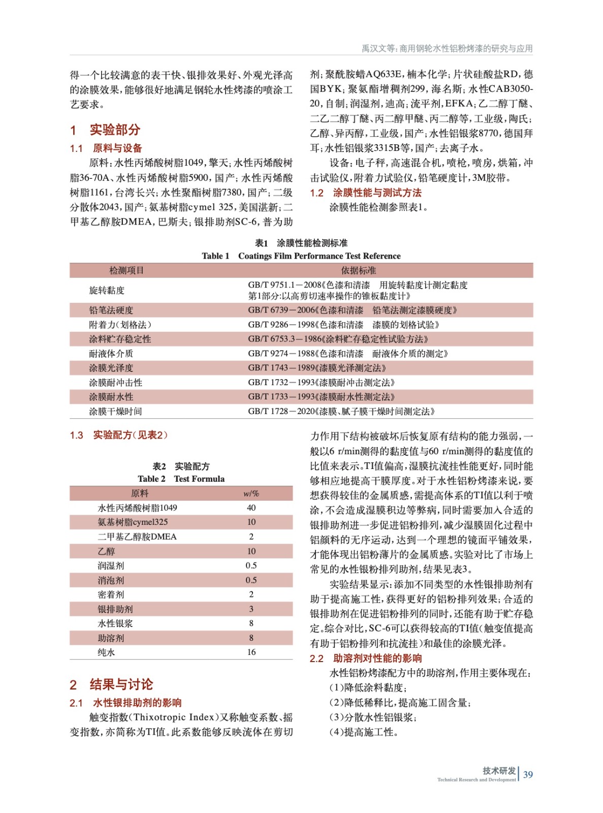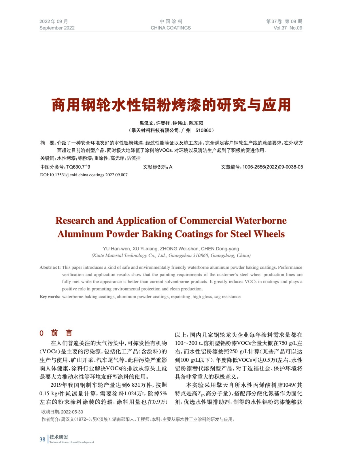 商用鋼輪水性鋁粉烤漆的研究與應(yīng)用
