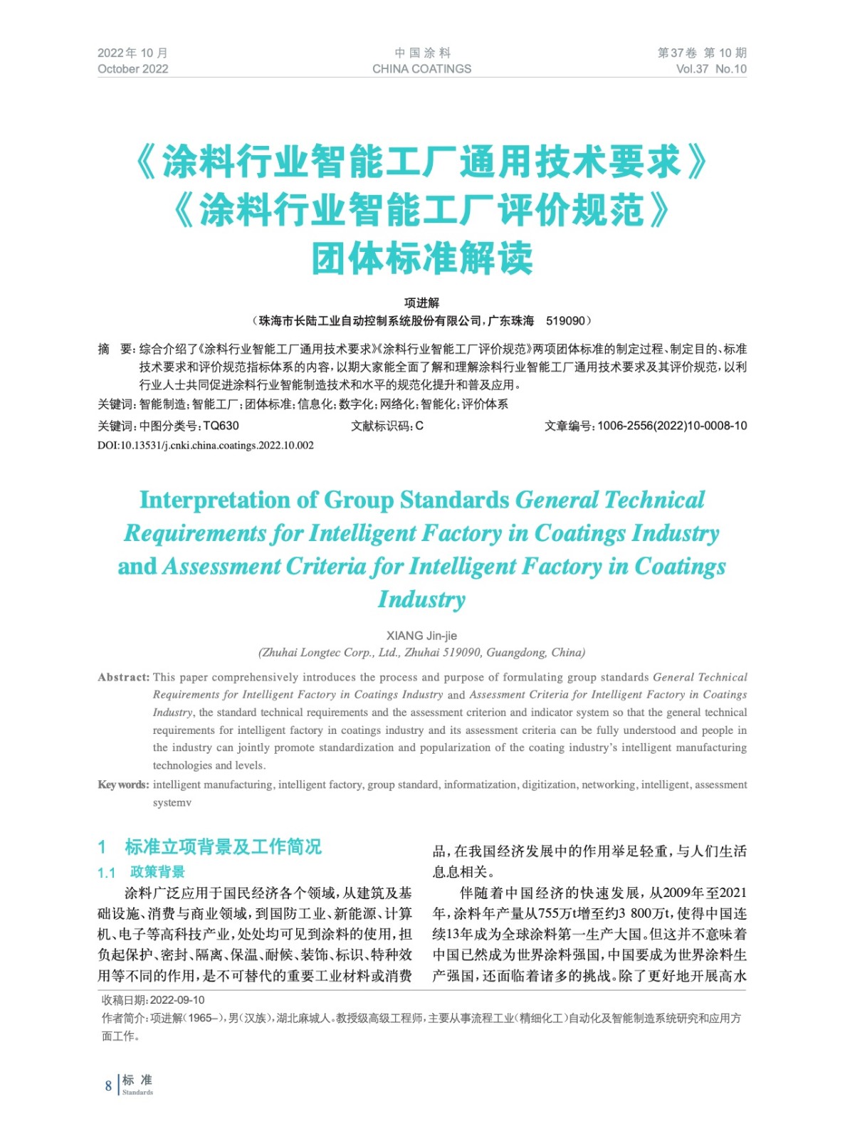 《涂料行業(yè)智能工廠通用技術(shù)要求》《涂料行業(yè)智能工廠評價規(guī)范》團體標準解讀