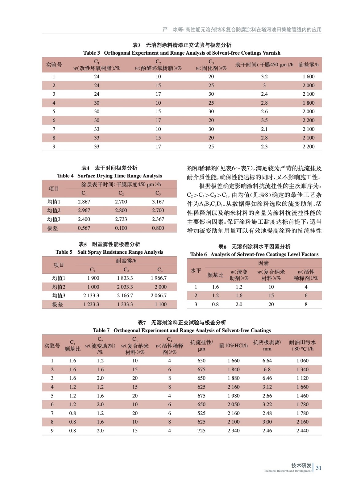 摘要:介紹了針對塔河油田集輸管線采出液高CO2、高H2S、高H2O、高Cl-、高礦化度、低pH值的“五高一低”高腐蝕性及集輸工況高溫、高壓的特點,采用正交試驗,根據(jù)極差數(shù)據(jù)離散分析開發(fā)出一款高性能無溶劑納米防腐涂料,專門適用于管道內(nèi)防腐,各項性能遠高于油田行業(yè)標準。
