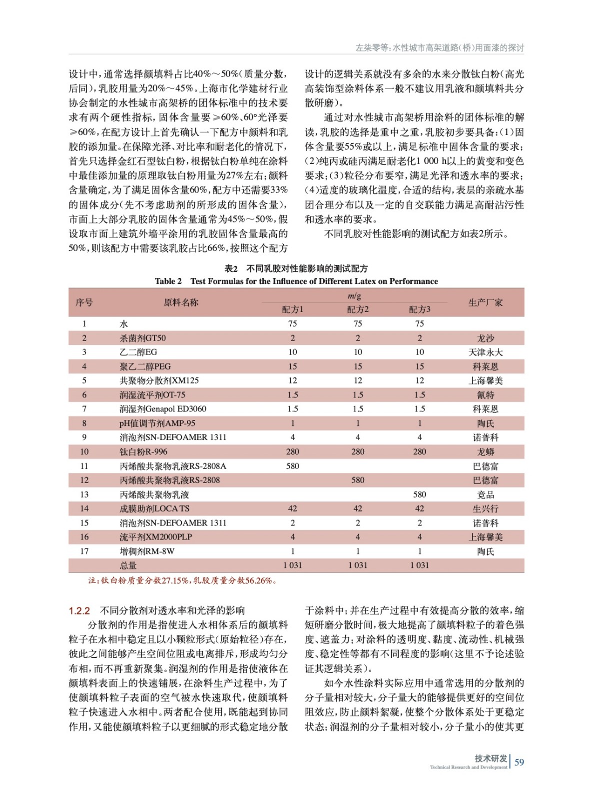 摘要:著重討論乳膠和分散劑對水性城市高架橋梁涂料的影響,在保證高固體含量、高光澤、低透水率的情況下,具有更突出的耐沾污性,從而充分保證了涂裝好的水性城市高架橋梁涂料持久靚麗。同時在產品應用開發(fā)中其VOC較低,極大減少VOC對環(huán)境的影響和對施工者人體的傷害。