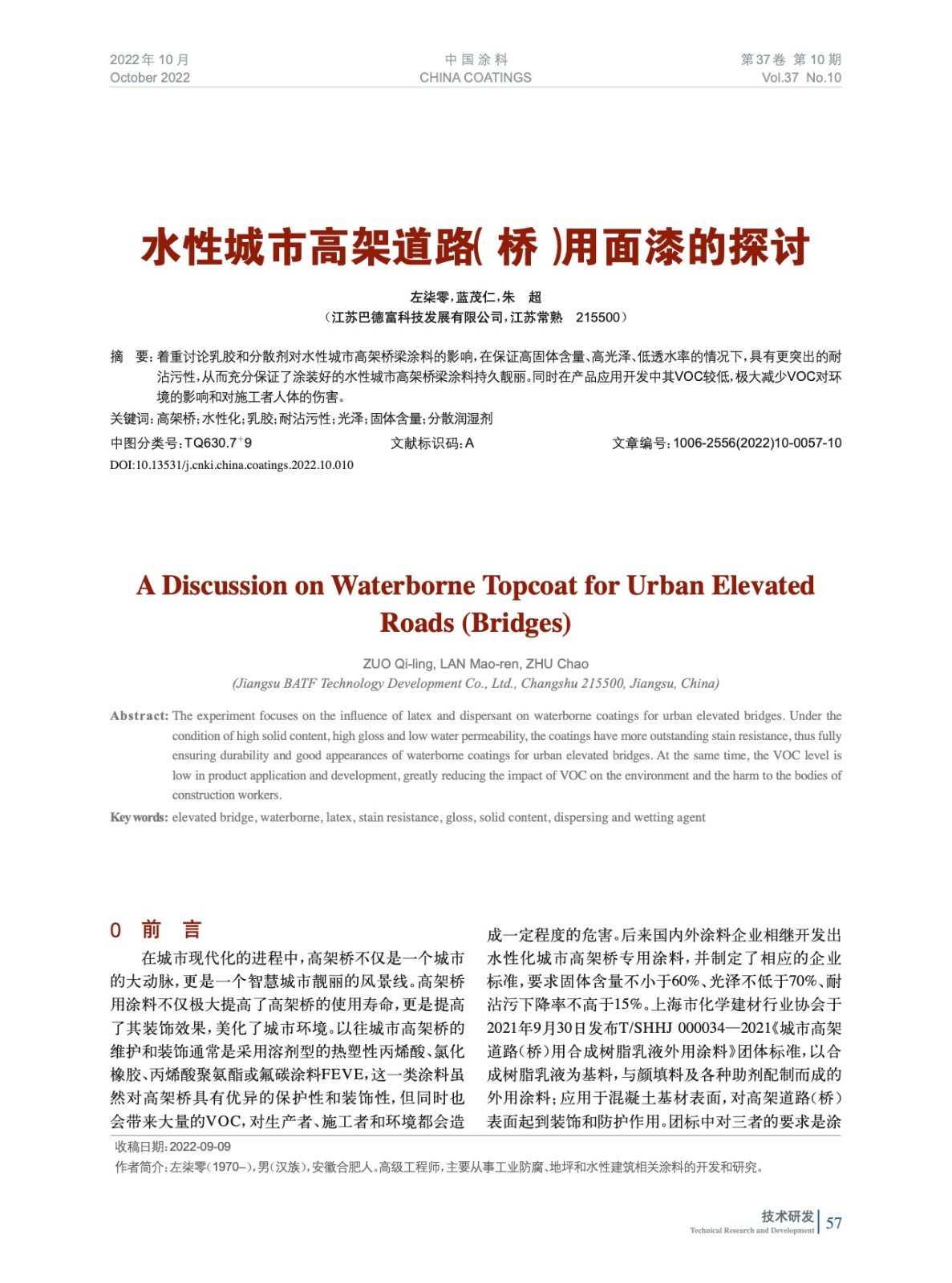 本文系作者@左柒零,藍茂仁,朱 超 授權中國涂料網發(fā)表,并經中國涂料網編輯,未經允許不得轉載,如需轉載請聯(lián)系chinacoatingnet@vip.163.com