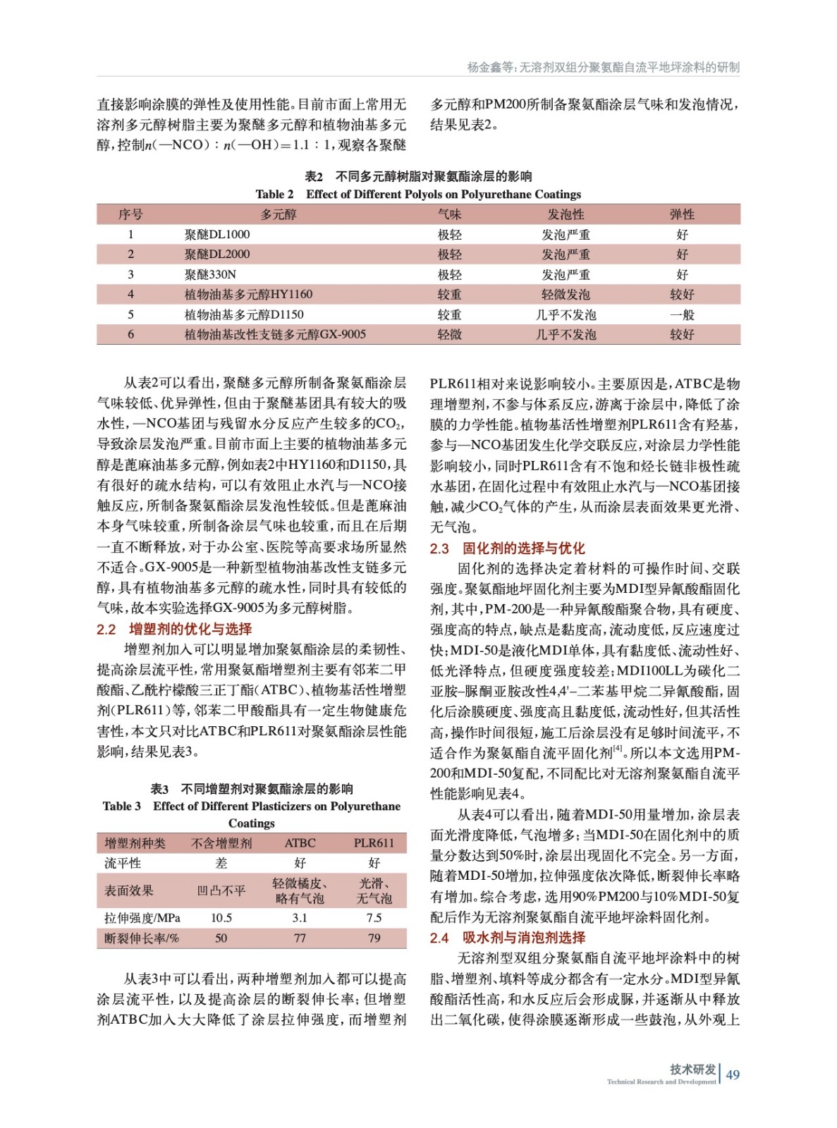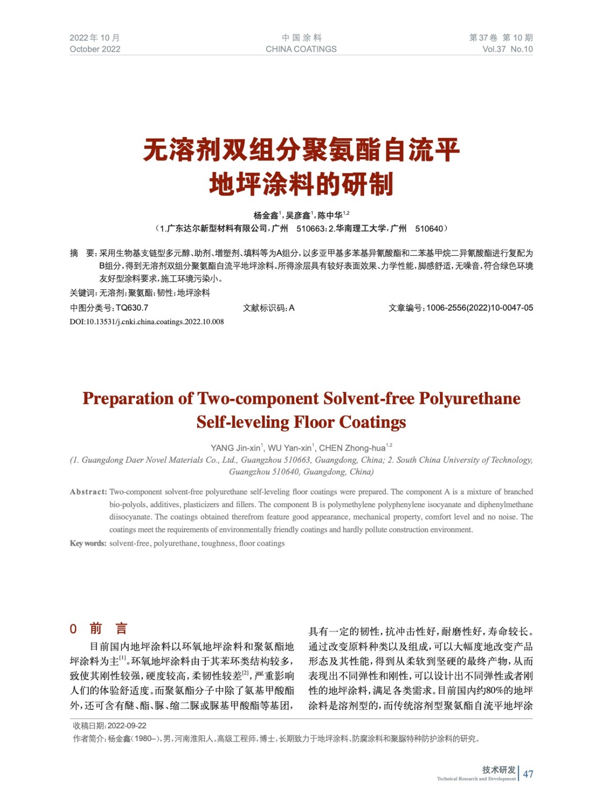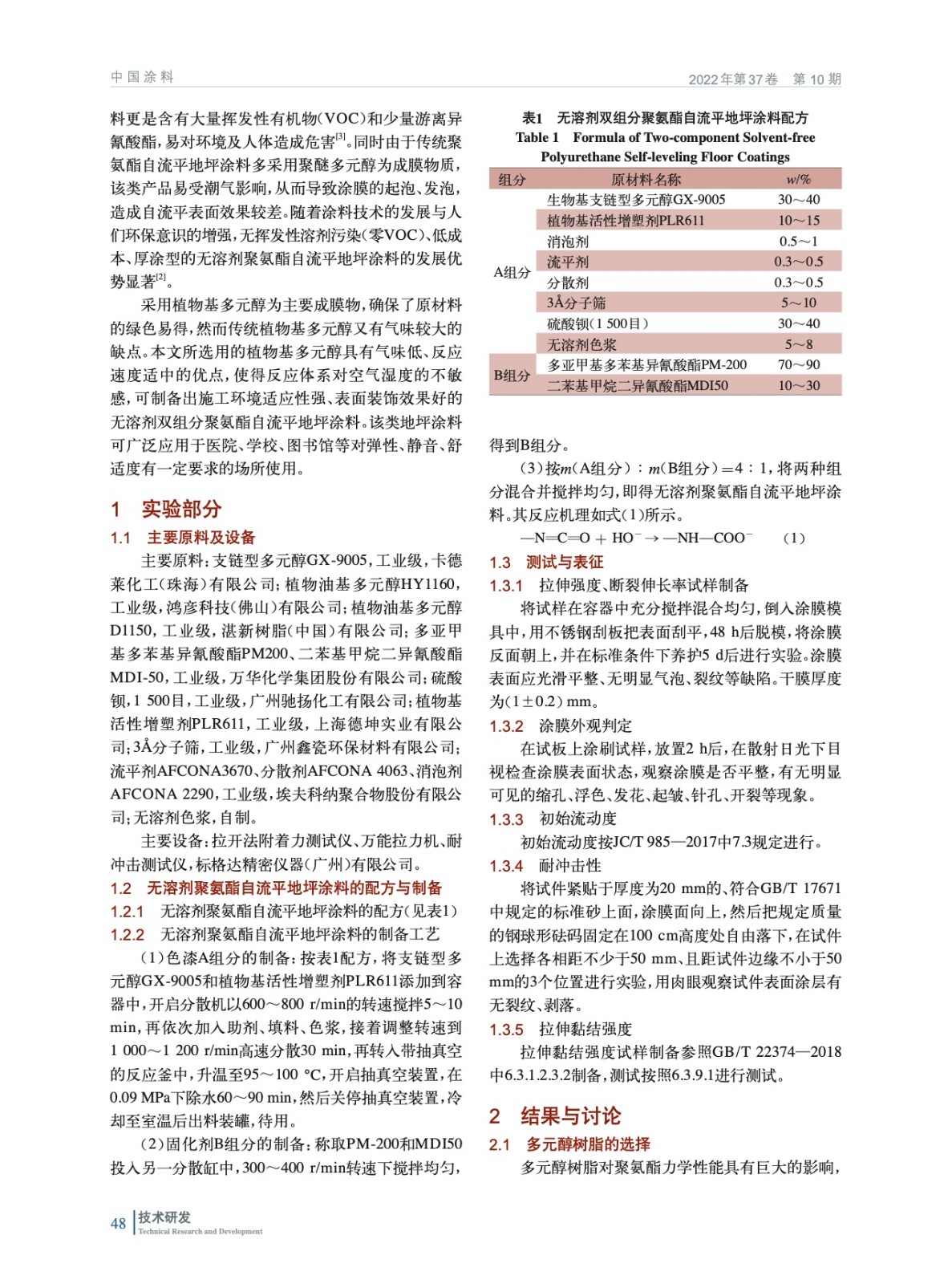 無(wú)溶劑雙組分聚氨酯自流平地坪涂料的研制