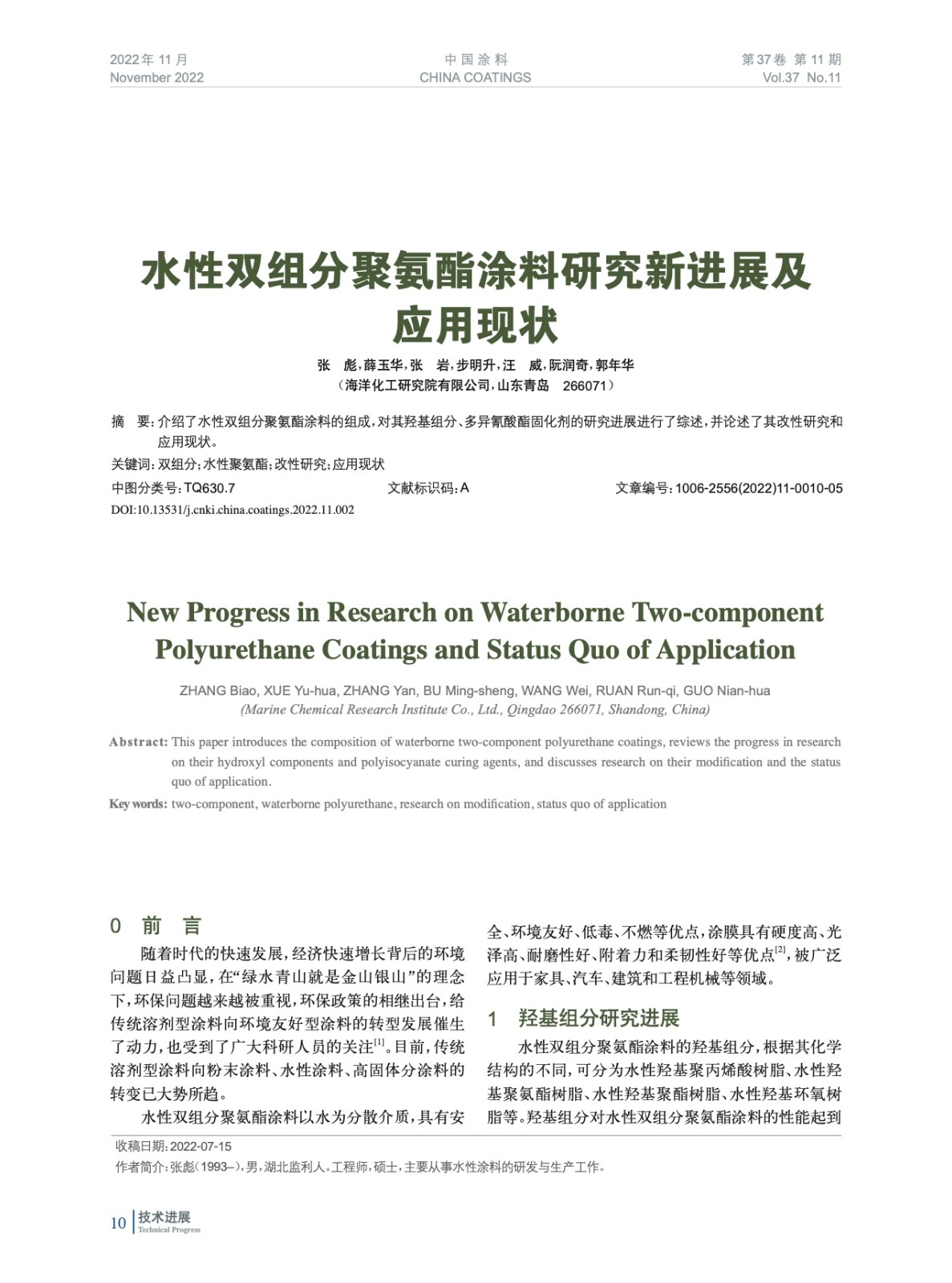 本文系作者@張 彪,薛玉華,張 巖,步明升,汪 威,阮潤奇,郭年華 授權中國涂料網(wǎng)發(fā)表,并經(jīng)中國涂料網(wǎng)編輯,未經(jīng)允許不得轉載,如需轉載請聯(lián)系chinacoatingnet@vip.163.com