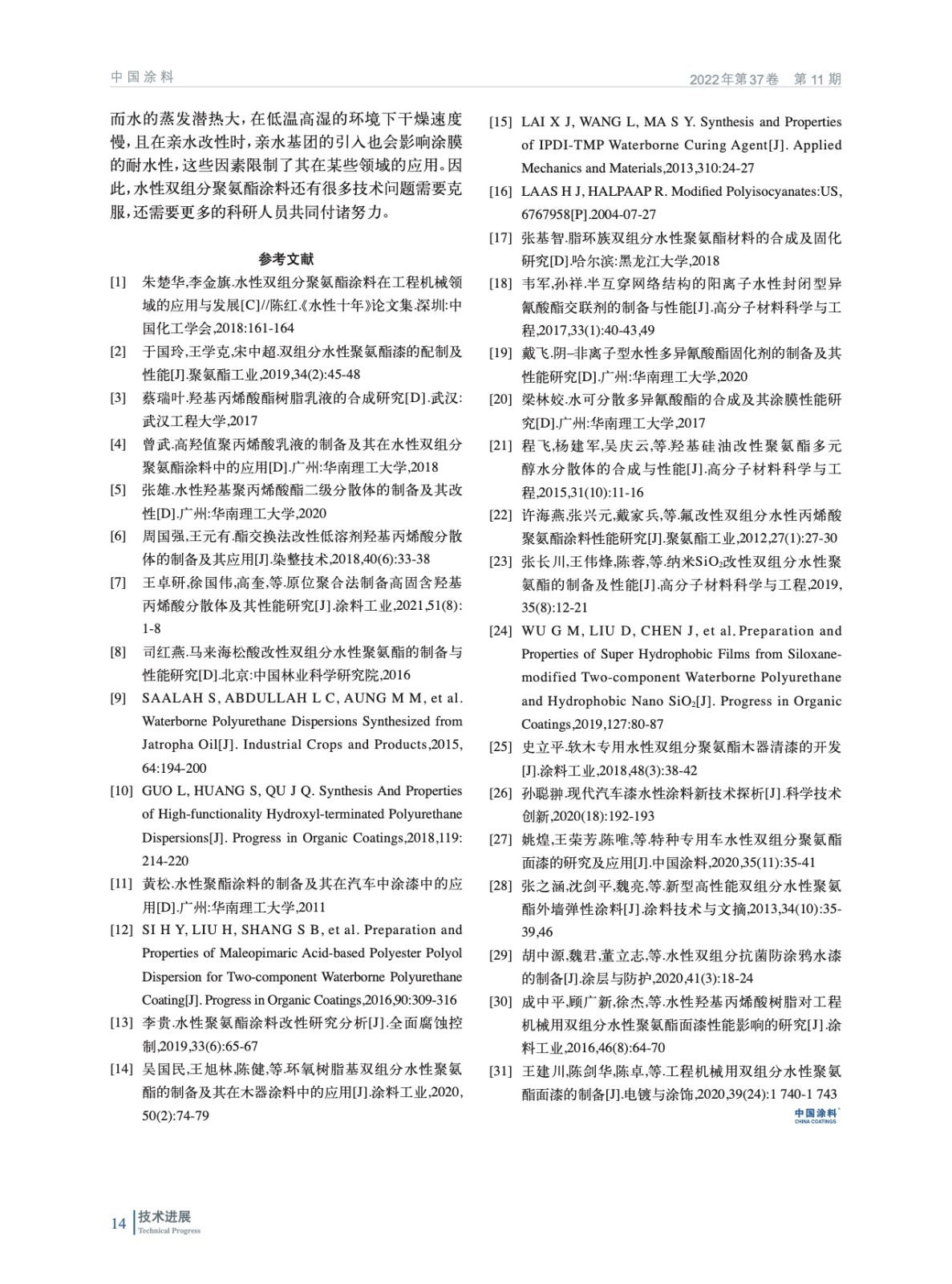水性雙組分聚氨酯涂料研究新進展及應用現(xiàn)狀