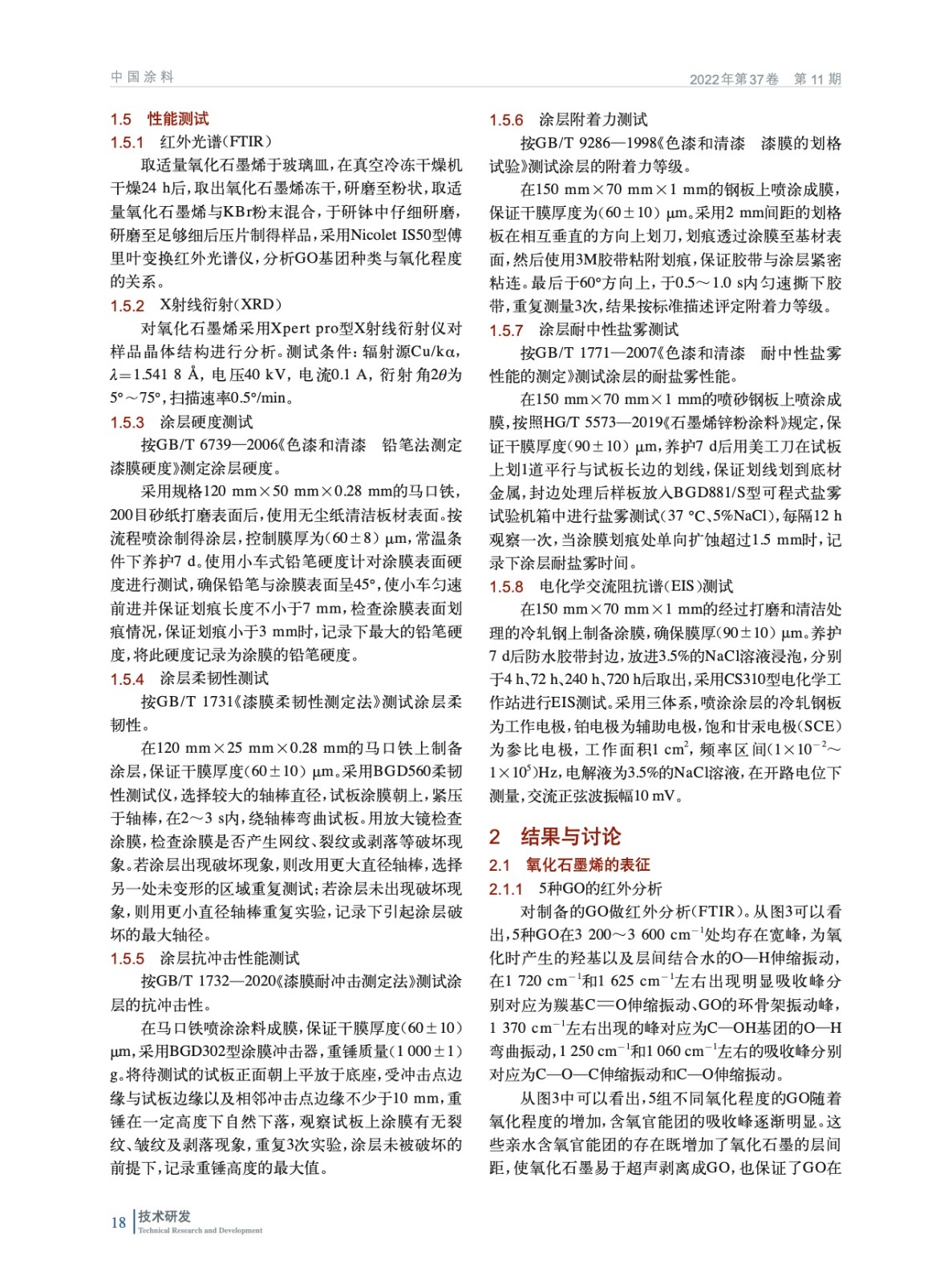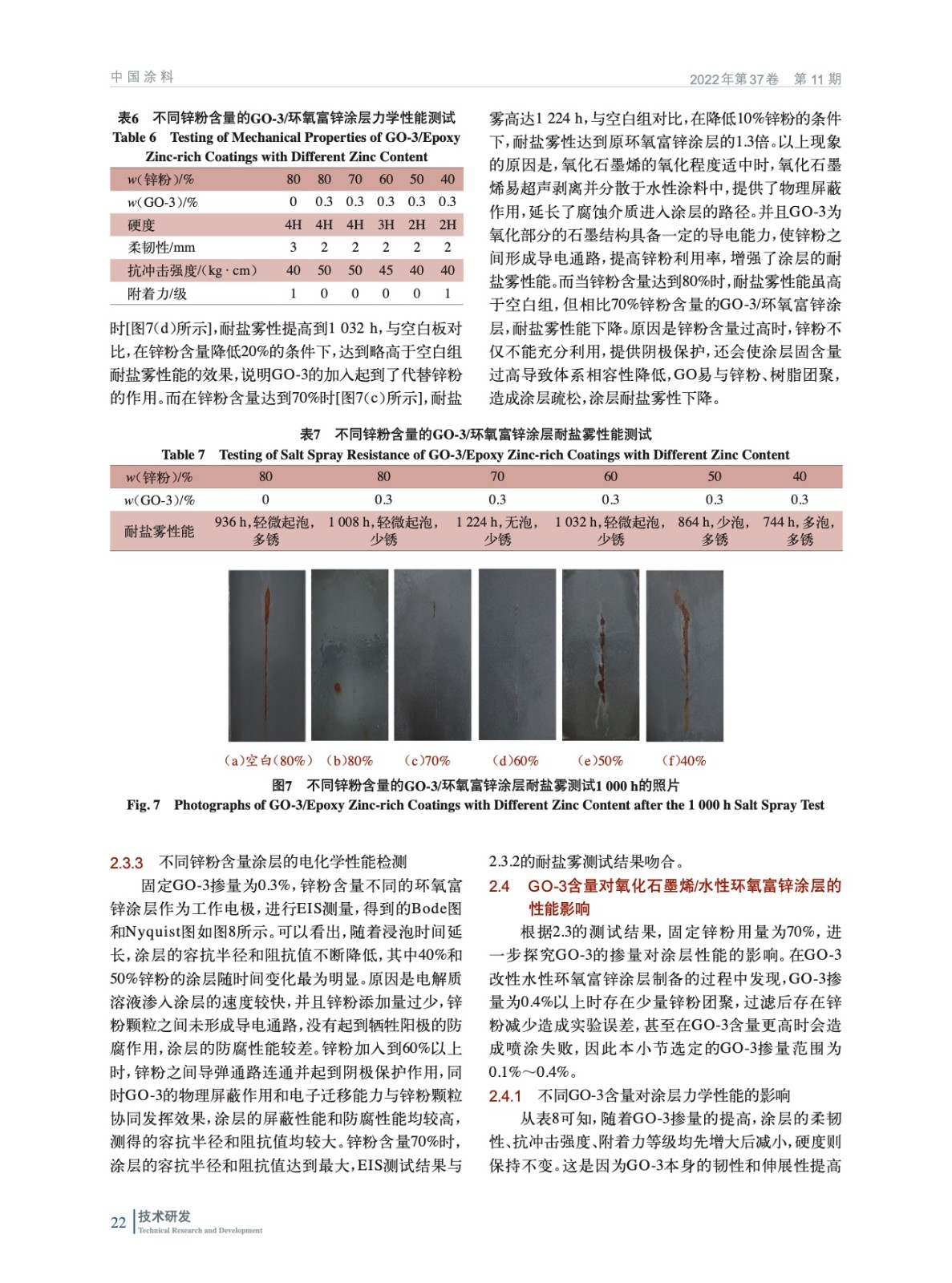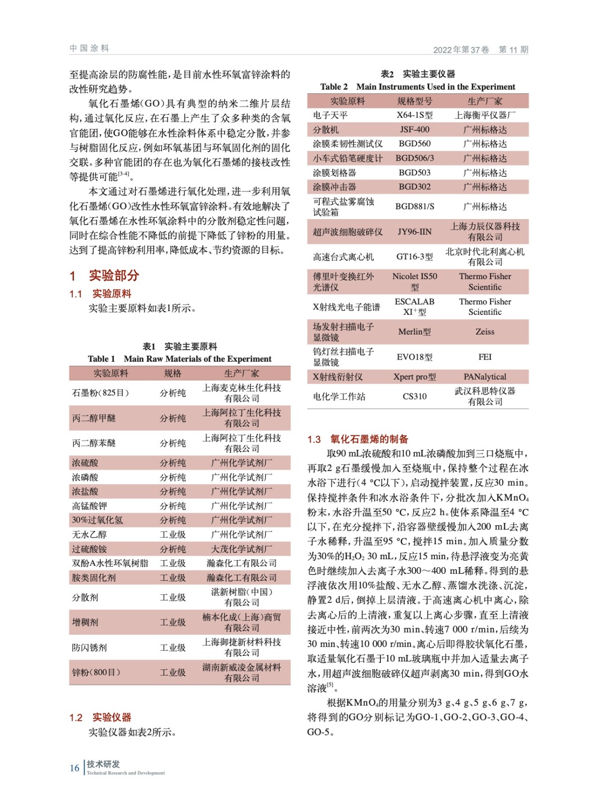 氧化石墨烯(GO)/水性環(huán)氧富鋅涂料的制備及性能研究