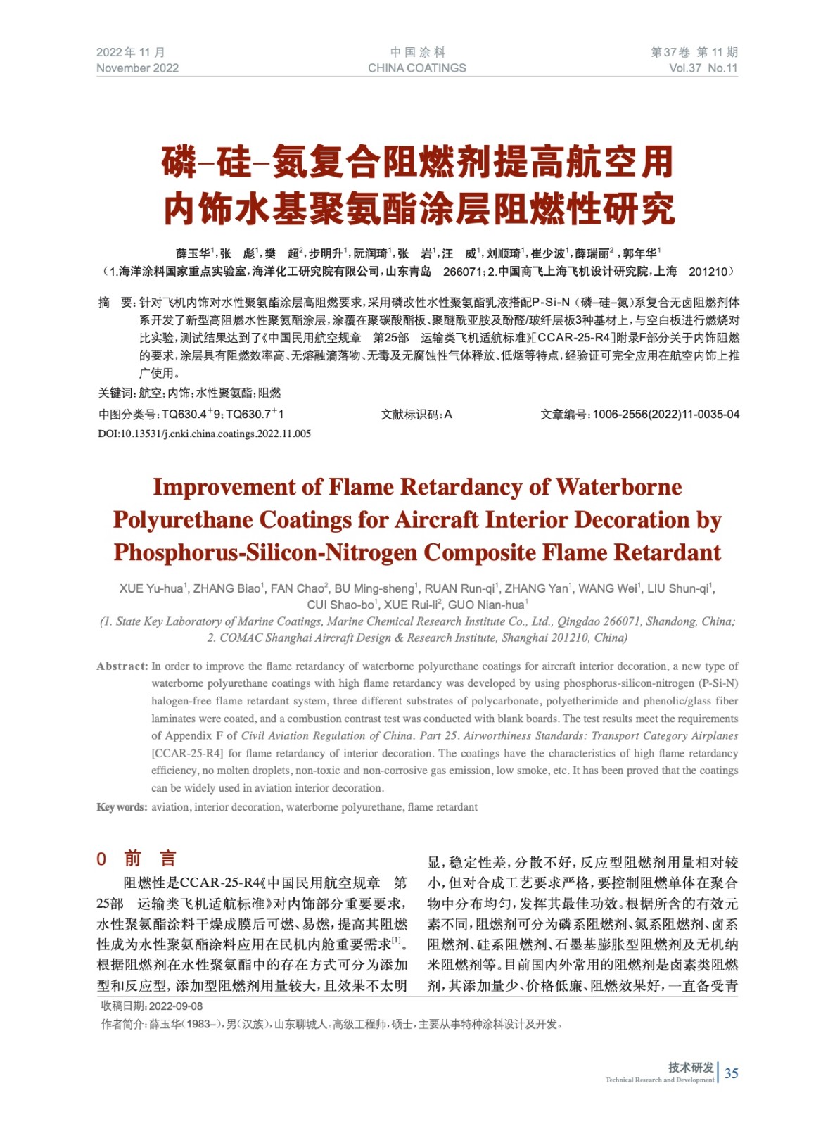 本文系作者@薛玉華,張 彪,樊 超,步明升,阮潤琦,張 巖,汪 威,劉順琦,崔少波,薛瑞麗,郭年華 授權(quán)中國涂料網(wǎng)發(fā)表,并經(jīng)中國涂料網(wǎng)編輯,未經(jīng)允許不得轉(zhuǎn)載,如需轉(zhuǎn)載請聯(lián)系chinacoatingnet@vip.163.com