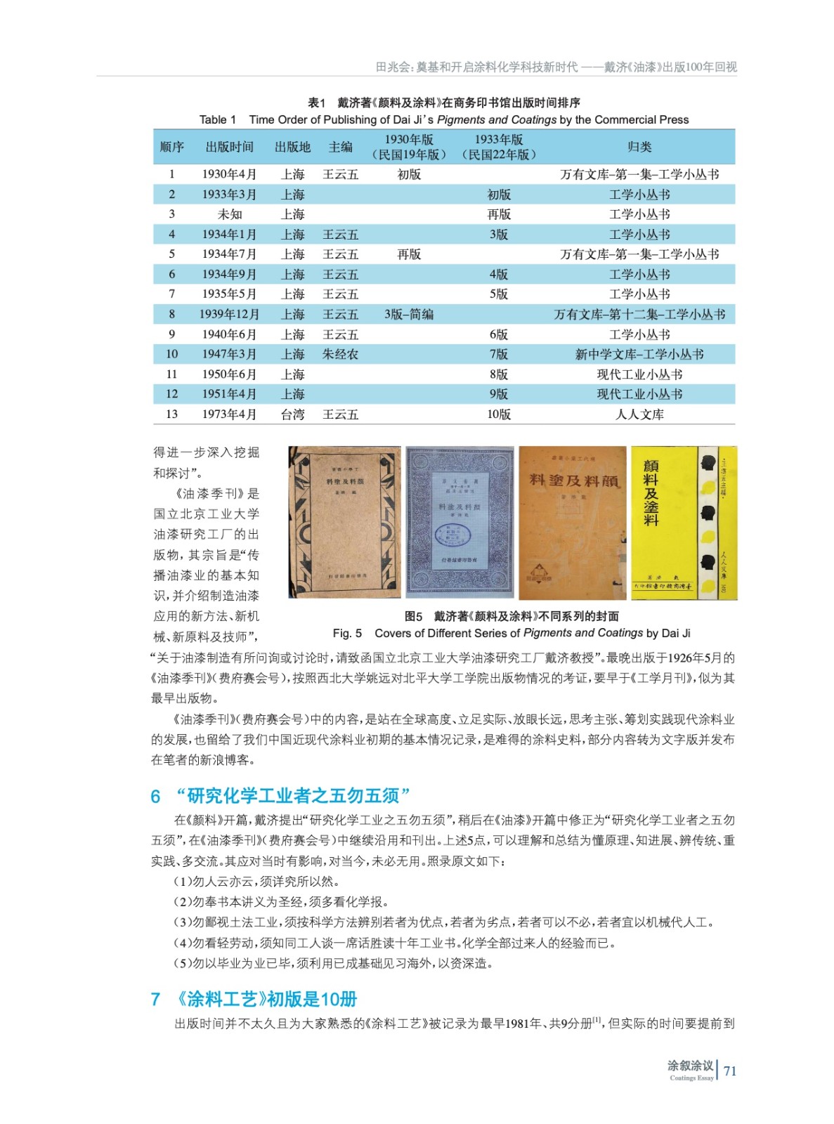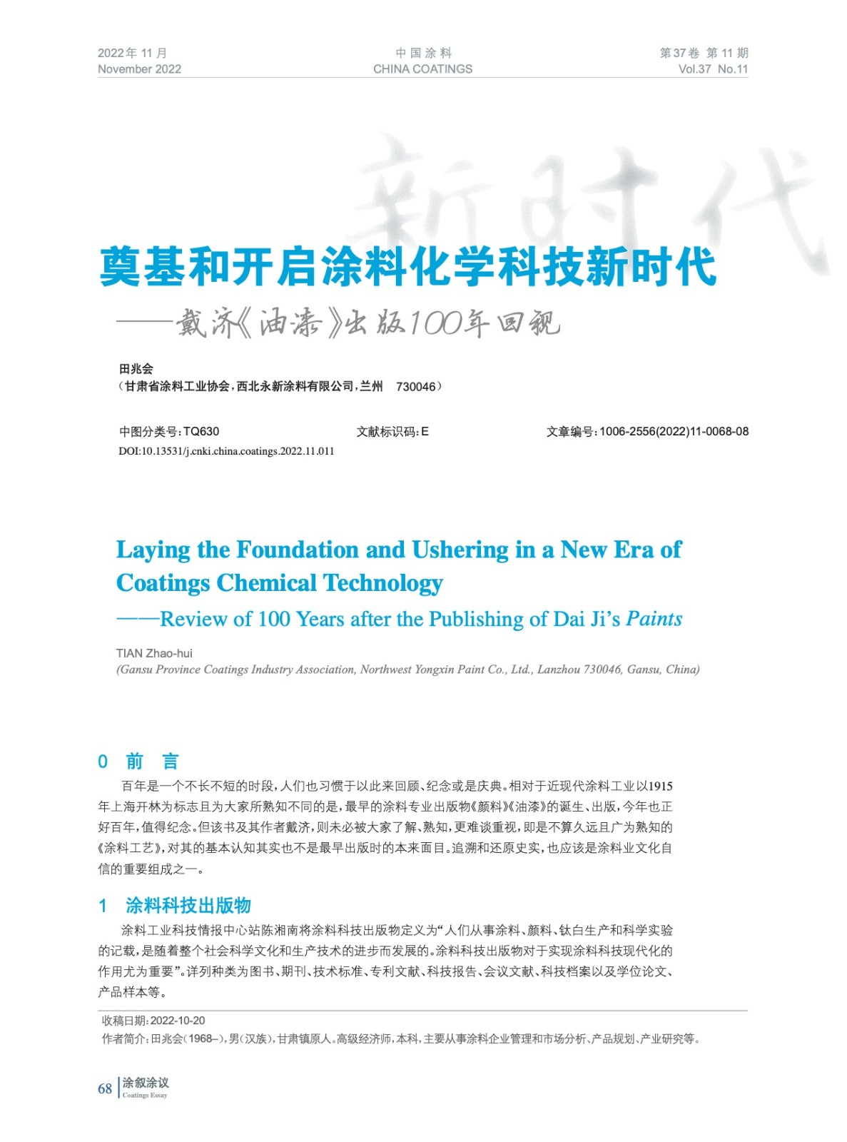 奠基和開啟涂料化學(xué)科技新時(shí)代——戴濟(jì)《油漆》出版100年回視
