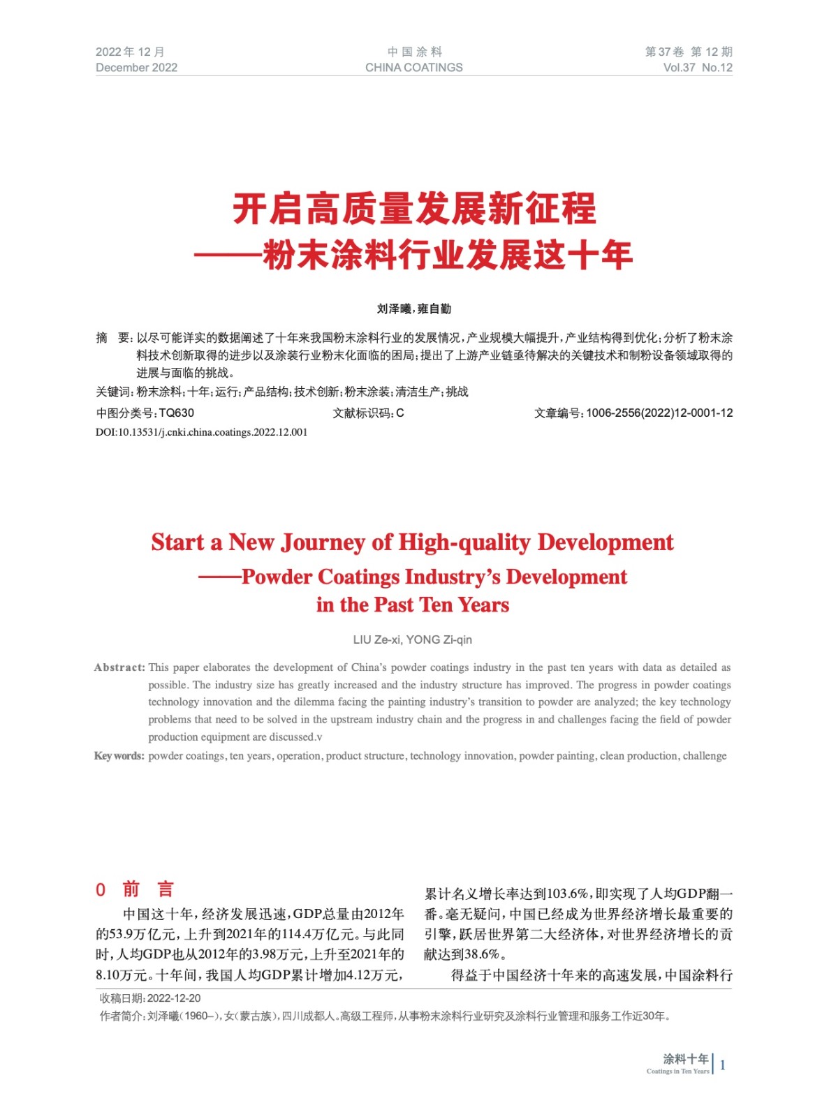 開啟高質(zhì)量發(fā)展新征程——粉末涂料行業(yè)發(fā)展這十年