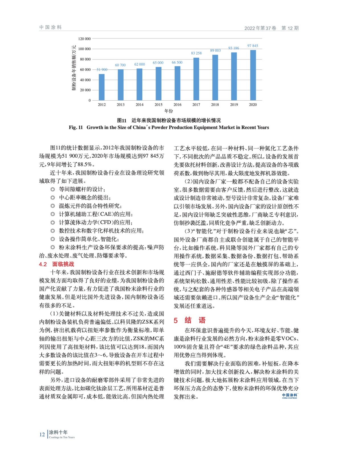 摘要:以盡可能詳實的數(shù)據(jù)闡述了十年來我國粉末涂料行業(yè)的發(fā)展情況,產(chǎn)業(yè)規(guī)模大幅提升,產(chǎn)業(yè)結(jié)構(gòu)得到優(yōu)化;分析了粉末涂料技術(shù)創(chuàng)新取得的進步以及涂裝行業(yè)粉末化面臨的困局;提出了上游產(chǎn)業(yè)鏈亟待解決的關(guān)鍵技術(shù)和制粉設備領(lǐng)域取得的進展與面臨的挑戰(zhàn)。