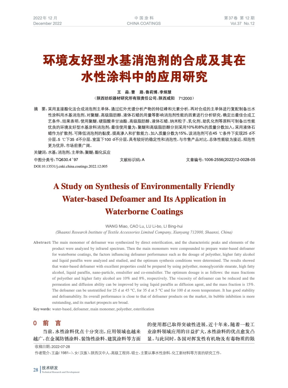 環(huán)境友好型水基消泡劑的合成及其在水性涂料中的應(yīng)用研究