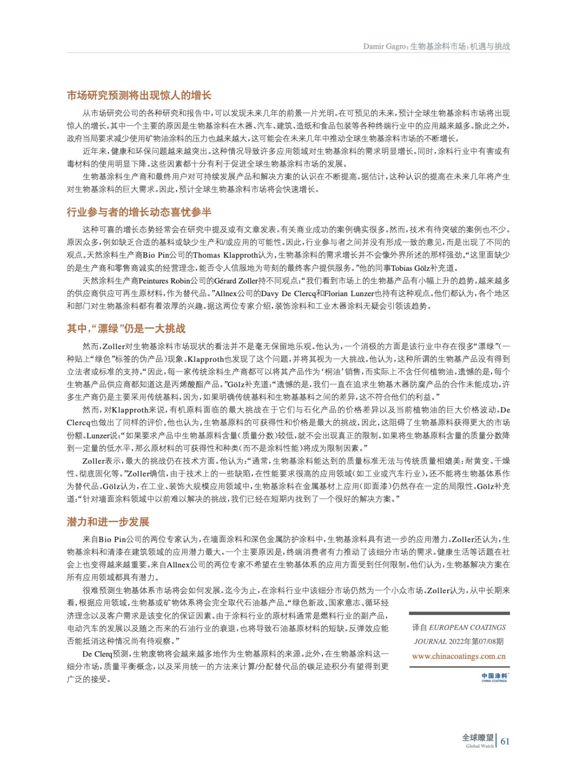摘要:編者按:在整個涂料行業(yè)中,生物基體系仍然是一個小眾市場。然而,事實證明,該小眾市場非常強勁,呈現(xiàn)出很多增長機遇?,F(xiàn)在,可持續(xù)發(fā)展和環(huán)保解決方案已經(jīng)成為社會大眾的話題,而不僅僅是邊緣群體的一種趨勢。近年來,涂料生產(chǎn)商不斷努力擴大生物基涂料的范圍,甚至將其納入到產(chǎn)品系列中。