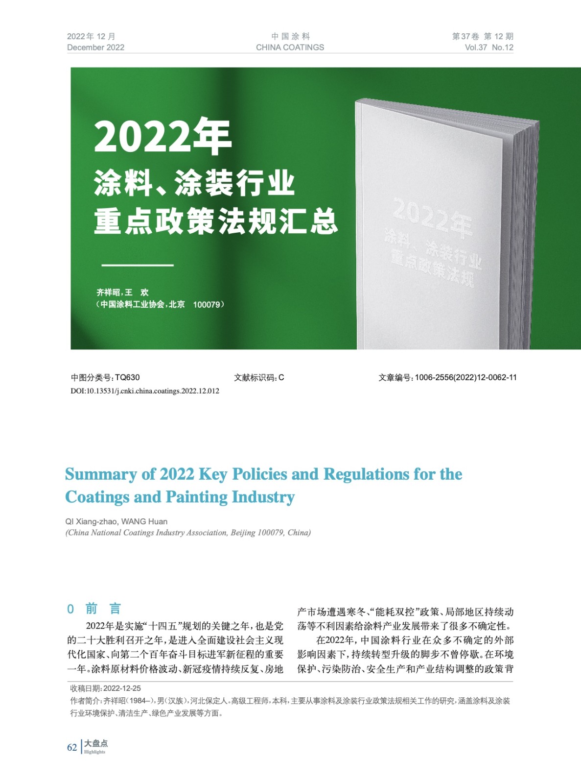 2022年涂料、涂裝行業(yè)重點政策法規(guī)匯總