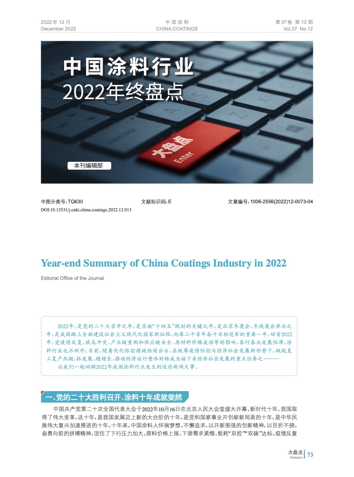 摘要:編者按:回首2022年,受疫情反復、俄烏沖突、產(chǎn)業(yè)鏈重構(gòu)和供應鏈安全、原材料價格波動等的影響,各行各業(yè)發(fā)展阻滯,涂料行業(yè)也不例外;目前,隨著優(yōu)化防控措施陸續(xù)出臺,在統(tǒng)籌疫情防控與經(jīng)濟社會發(fā)展新形勢下,掀起復工復產(chǎn)熱潮,抓發(fā)展、穩(wěn)增長、推動經(jīng)濟運行整體好轉(zhuǎn)成為接下來經(jīng)濟社會發(fā)展的重點任務之一……讓我們一起回顧2022年我國涂料行業(yè)發(fā)生的這些新聞大事。