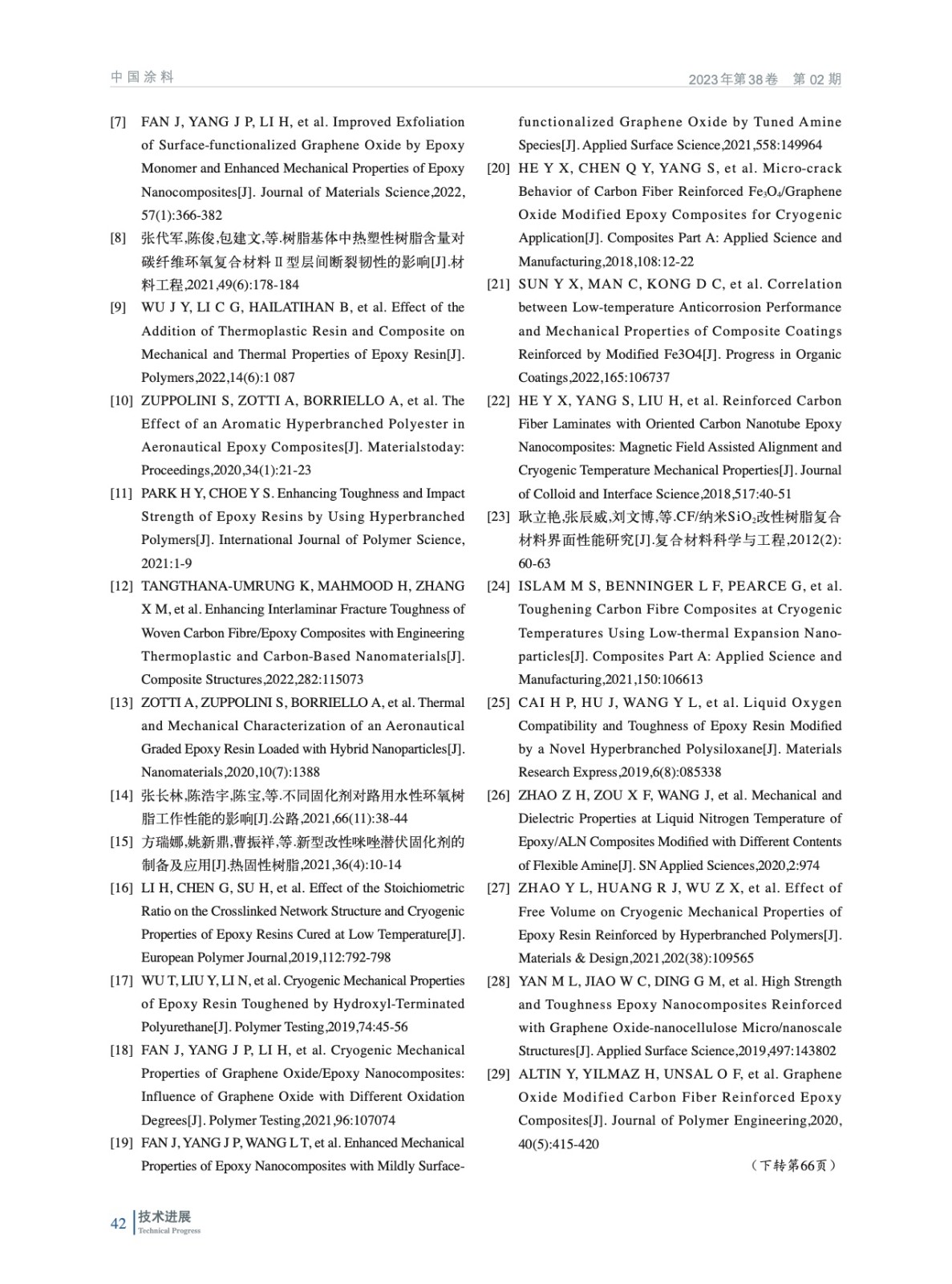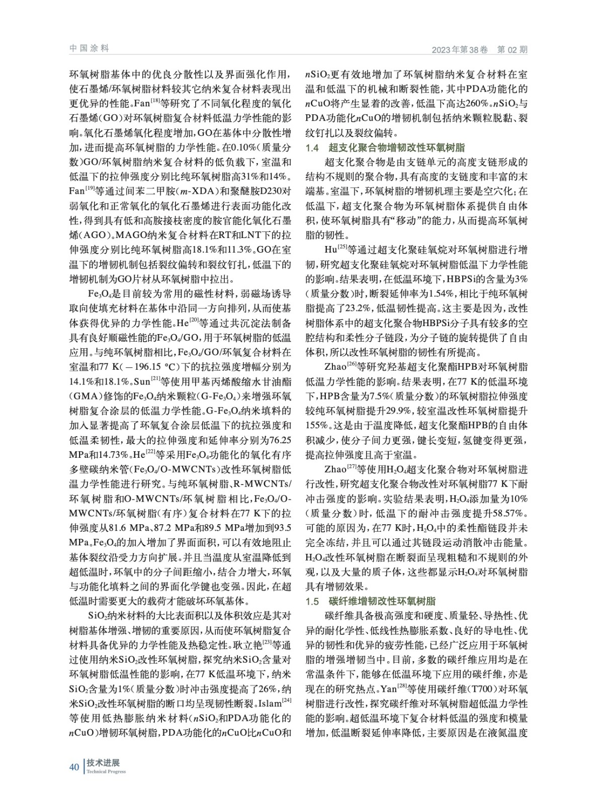摘要:總結了環(huán)氧樹脂在低溫環(huán)境下的增韌方法,即固化劑的選擇、熱塑性聚合物增韌改性環(huán)氧樹脂、納米材料增韌改性環(huán)氧樹脂、超支化聚合物增韌改性環(huán)氧樹脂和碳纖維增韌改性環(huán)氧樹脂,對近幾年國內外環(huán)氧樹脂低溫增韌研究成果和改性環(huán)氧樹脂力學性能模擬分析進行綜述。最后,對環(huán)氧樹脂低溫增韌研究的發(fā)展趨勢作出了展望。