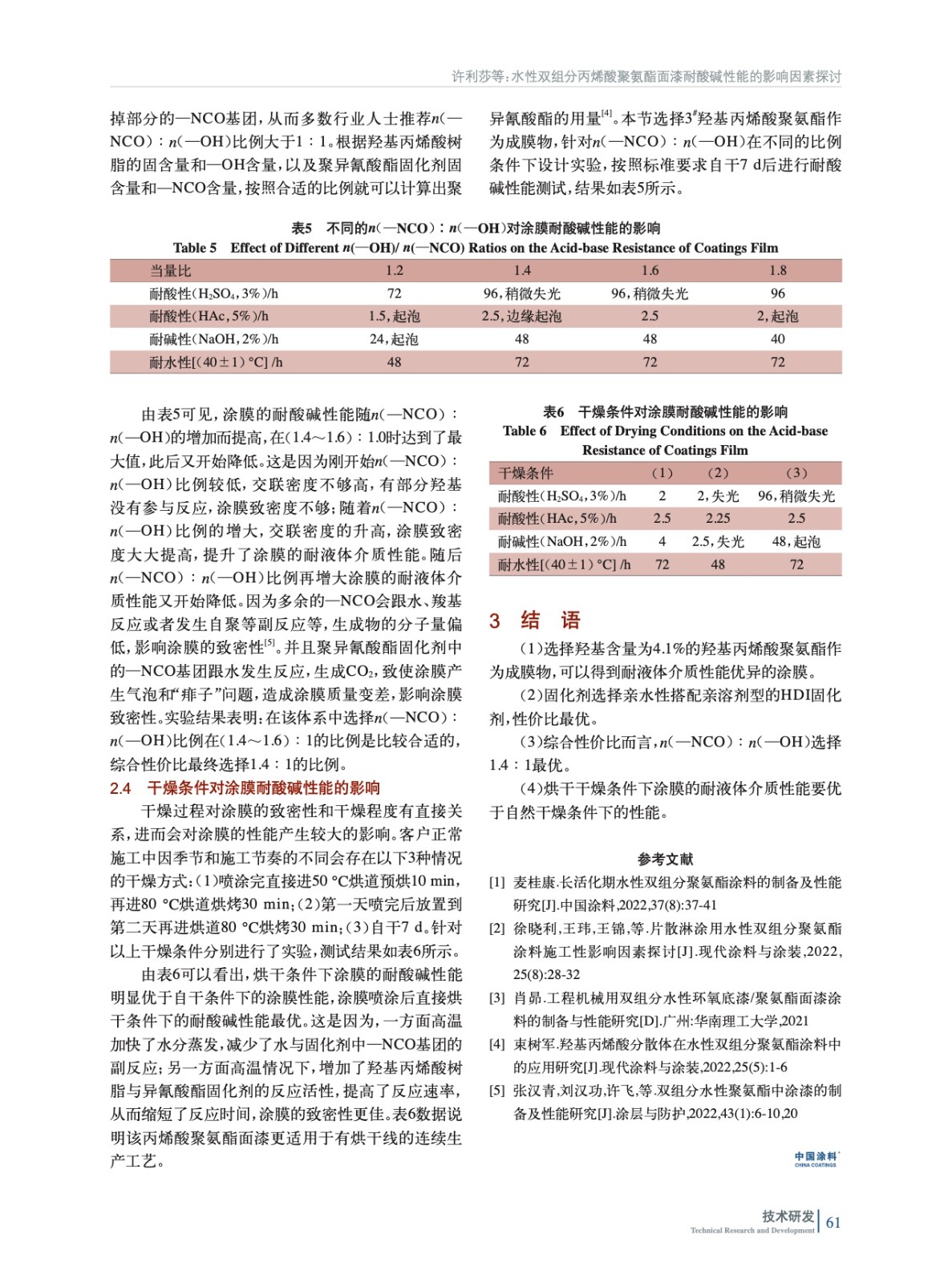 水性雙組分丙烯酸聚氨酯面漆耐酸堿性能的影響因素探討