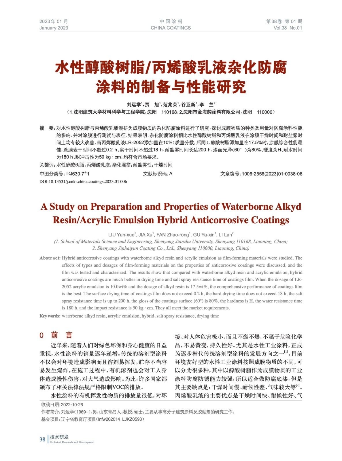 本文系作者@劉運(yùn)學(xué),賈 旭,范兆榮,谷亞新,李 蘭 授權(quán)中國(guó)涂料網(wǎng)發(fā)表,并經(jīng)中國(guó)涂料網(wǎng)編輯,未經(jīng)允許不得轉(zhuǎn)載,如需轉(zhuǎn)載請(qǐng)聯(lián)系chinacoatingnet@vip.163.com