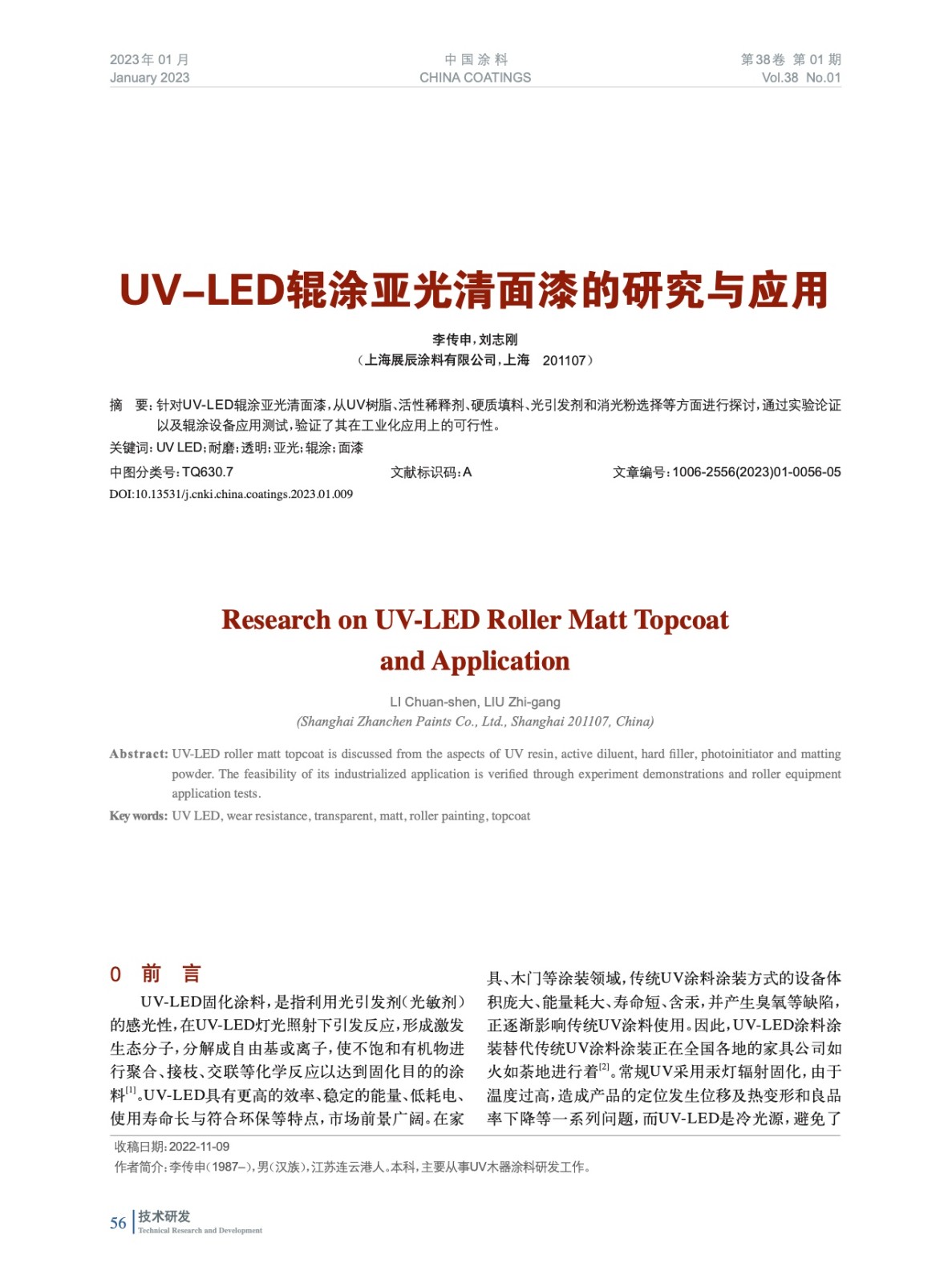 UV-LED輥涂亞光清面漆的研究與應(yīng)用