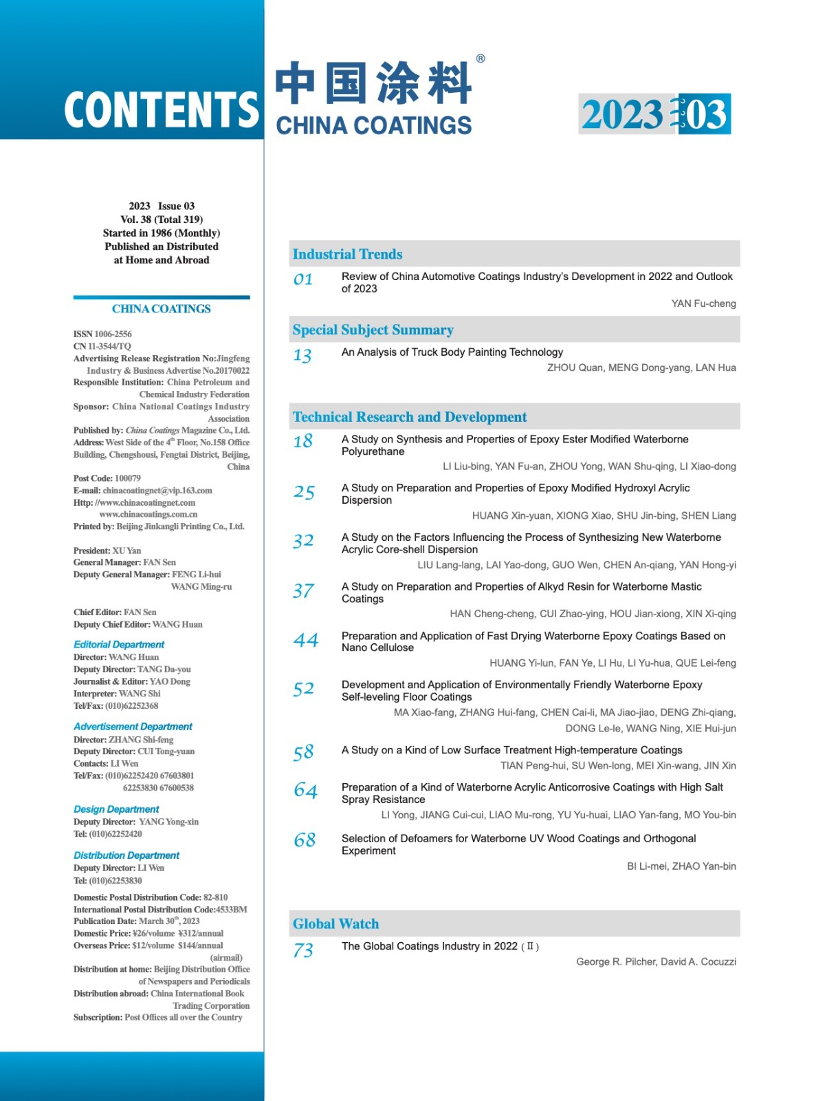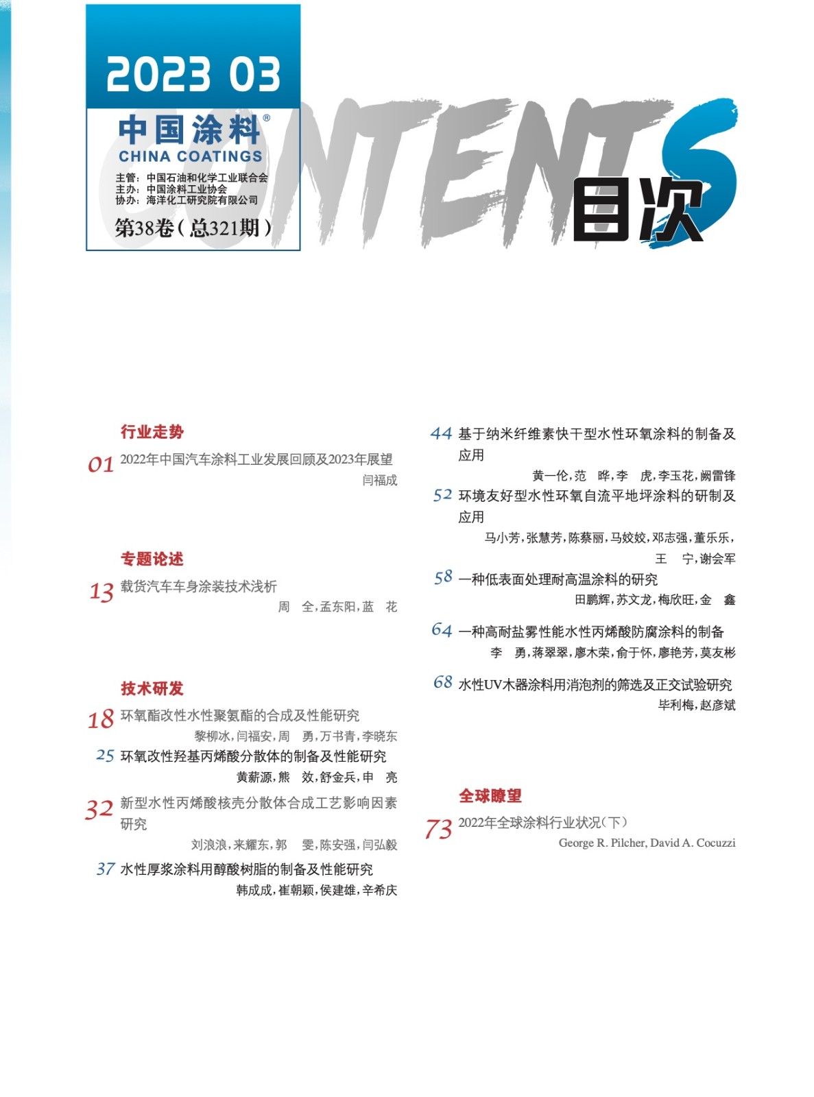 《中國(guó)涂料》第202303期 目次