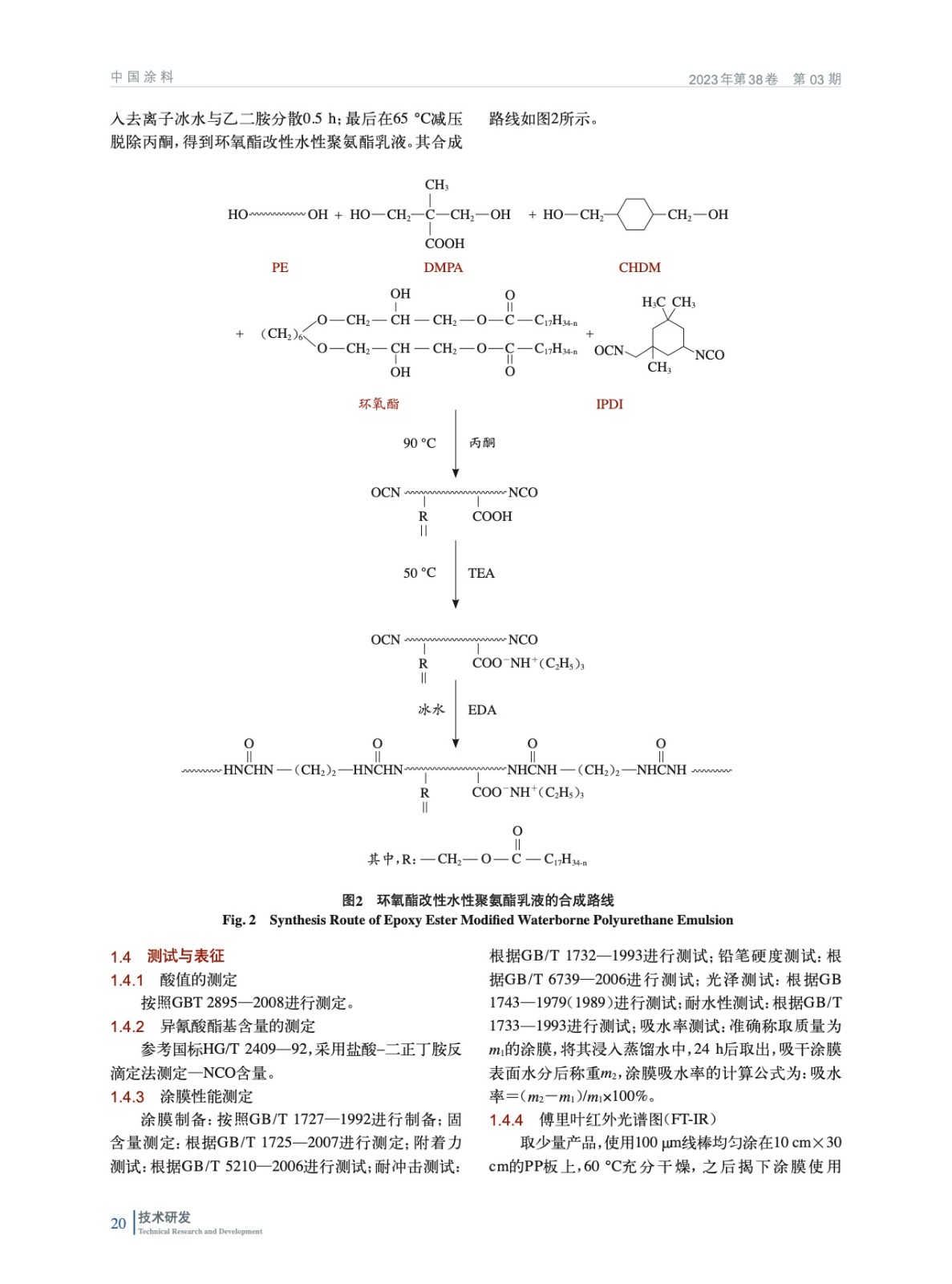 環(huán)氧酯改性水性聚氨酯的合成及性能研究