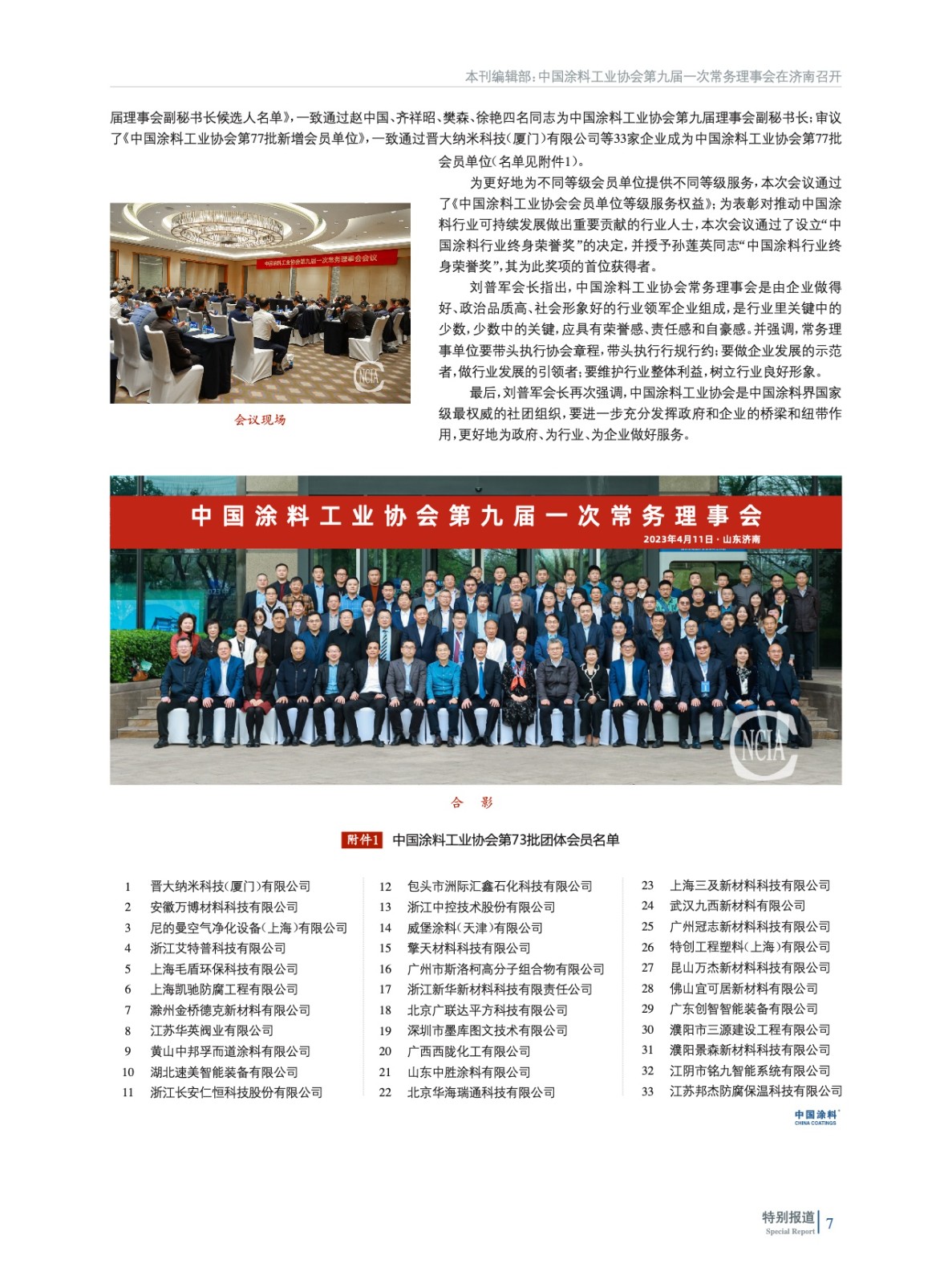 中國涂料工業(yè)協(xié)會第九屆一次常務(wù)理事會在濟(jì)南召開
