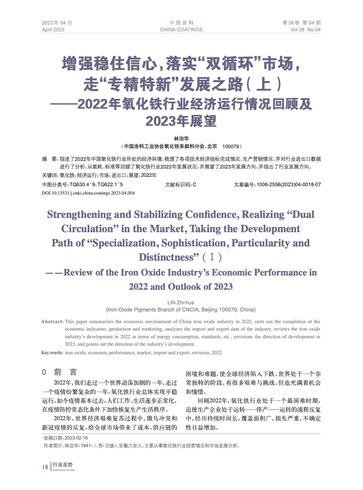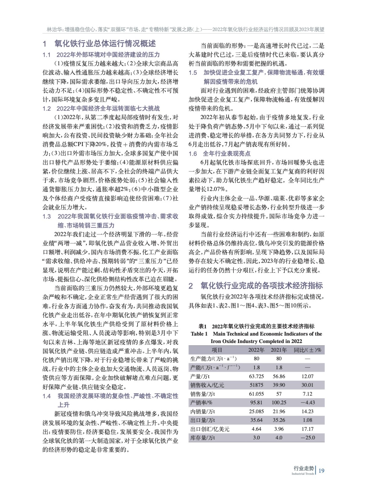 增強穩(wěn)住信心,落實“雙循環(huán)”市場,走“專精特新”發(fā)展之路(上)——2022年氧化鐵行業(yè)經(jīng)濟運行情況回顧及2023年展望