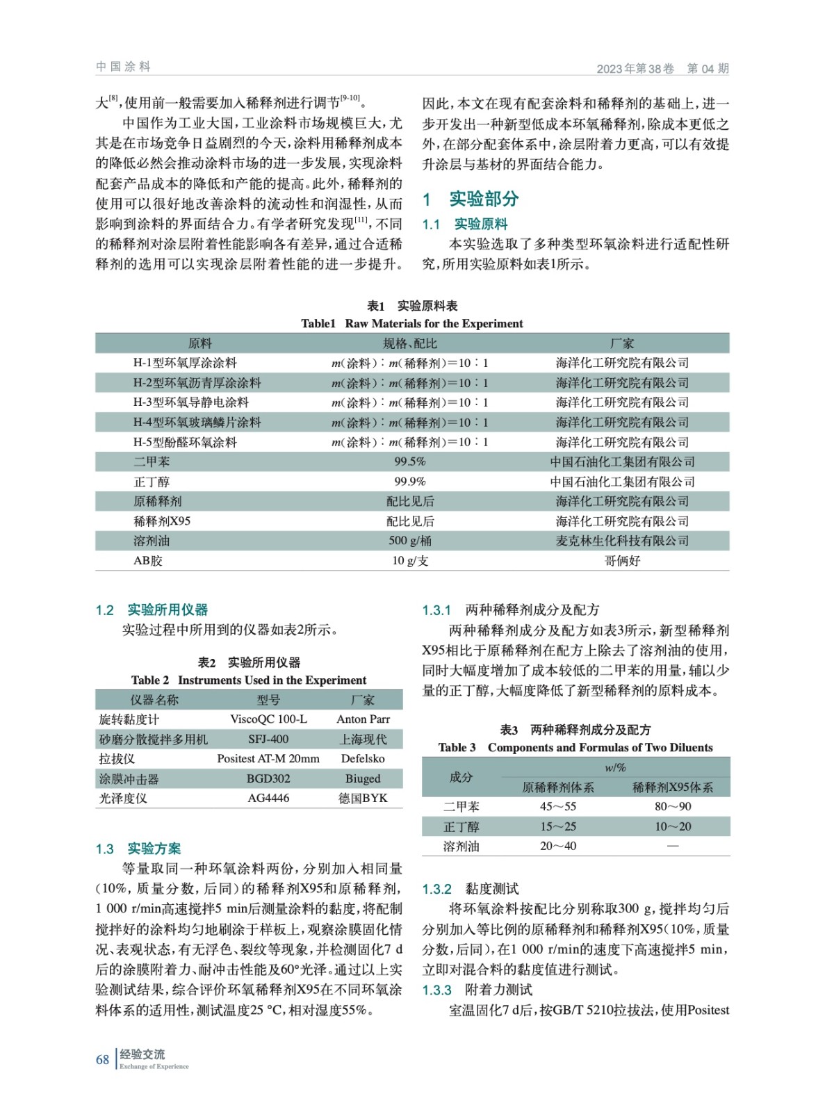 摘要:為降低涂料用稀釋劑成本,滿足工業(yè)涂料發(fā)展的需要,實(shí)驗(yàn)開發(fā)出一種低成本的環(huán)氧稀釋劑(X95),并對其稀釋后涂料的黏度及涂層的表觀狀態(tài)、附著力、耐沖擊等性能進(jìn)行了研究。研究發(fā)現(xiàn),相比于原稀釋劑,稀釋劑X95對應(yīng)涂層附著力和60°光澤相對較高,涂層表面無明顯缺陷,50 kg·cm沖擊試驗(yàn)后涂層無脫落,總體表現(xiàn)出比原稀釋劑更低的成本和更優(yōu)的適配性。
