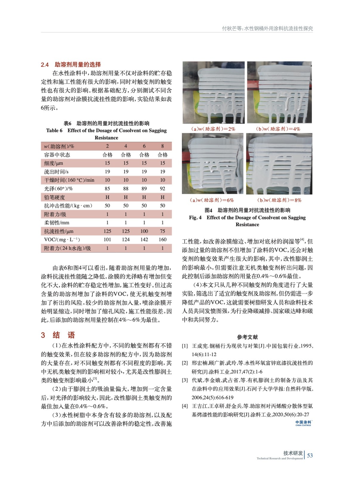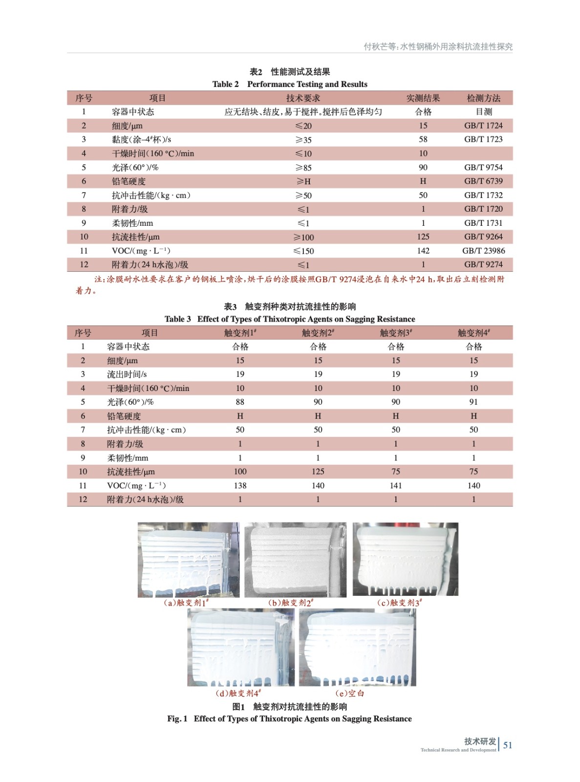 摘要:以水性樹(shù)脂和水性氨基樹(shù)脂為主要成膜物,搭配觸變劑并通過(guò)控制體系的pH值,制備了抗流掛性能良好的水性鋼桶用涂料??疾炝擞|變劑種類和用量以及不同含量的助溶劑對(duì)水性鋼桶用涂料抗流掛性能的影響。結(jié)果表明:在水性樹(shù)脂和水性氨基樹(shù)脂作為成膜物時(shí),搭配改性膨潤(rùn)土類的觸變劑,控制后添加助溶劑的質(zhì)量分?jǐn)?shù)在8%~12%時(shí),涂膜的抗流掛性能達(dá)到100 μm以上。