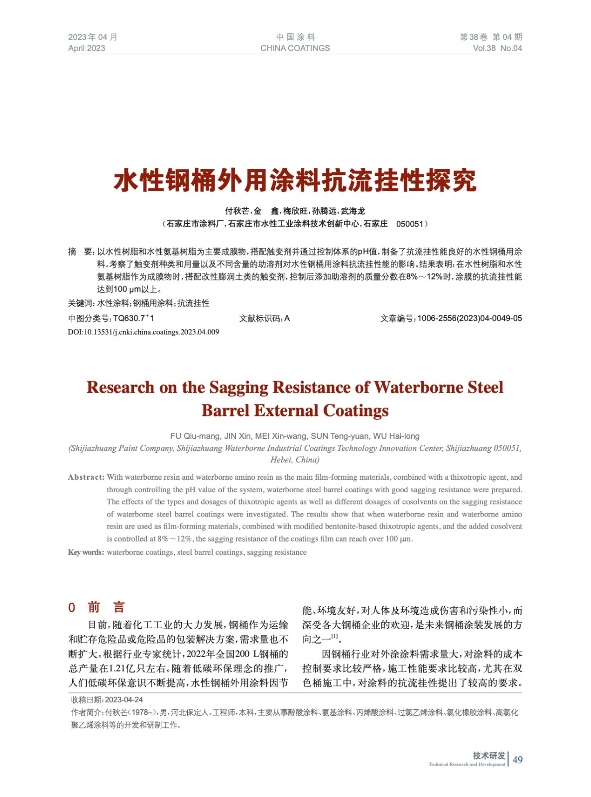 本文系作者@付秋芒,金 鑫,梅欣旺,孫騰遠(yuǎn),武海龍 授權(quán)中國(guó)涂料網(wǎng)發(fā)表,并經(jīng)中國(guó)涂料網(wǎng)編輯,未經(jīng)允許不得轉(zhuǎn)載,如需轉(zhuǎn)載請(qǐng)聯(lián)系chinacoatingnet@vip.163.com