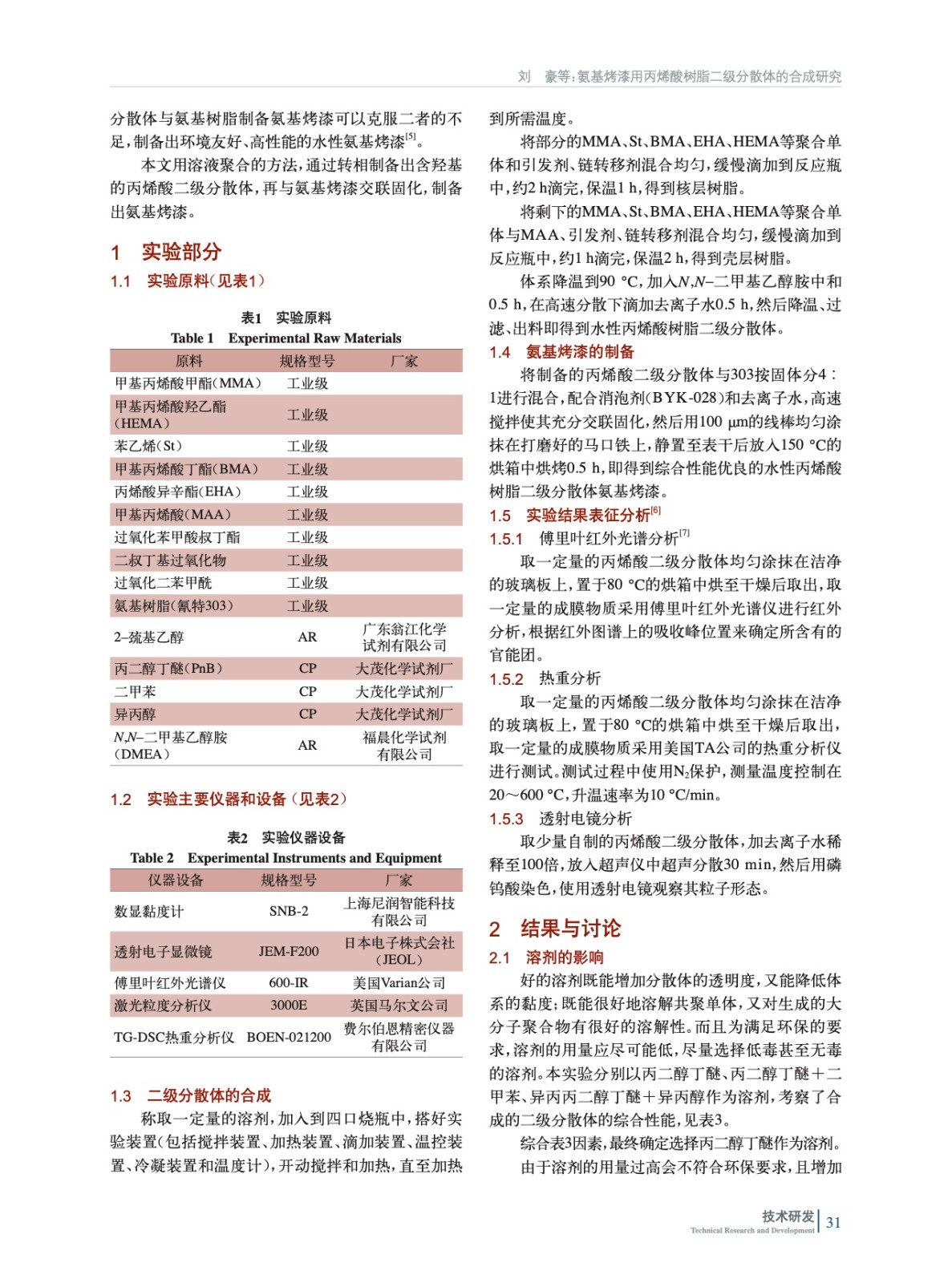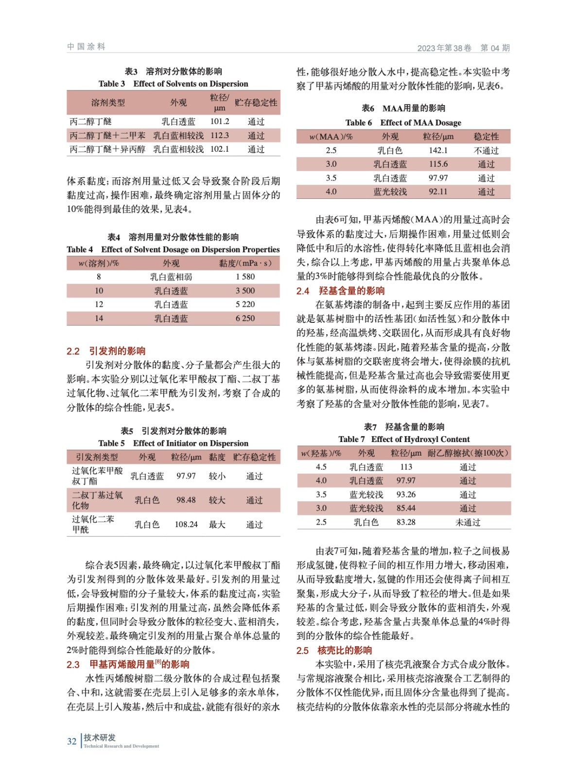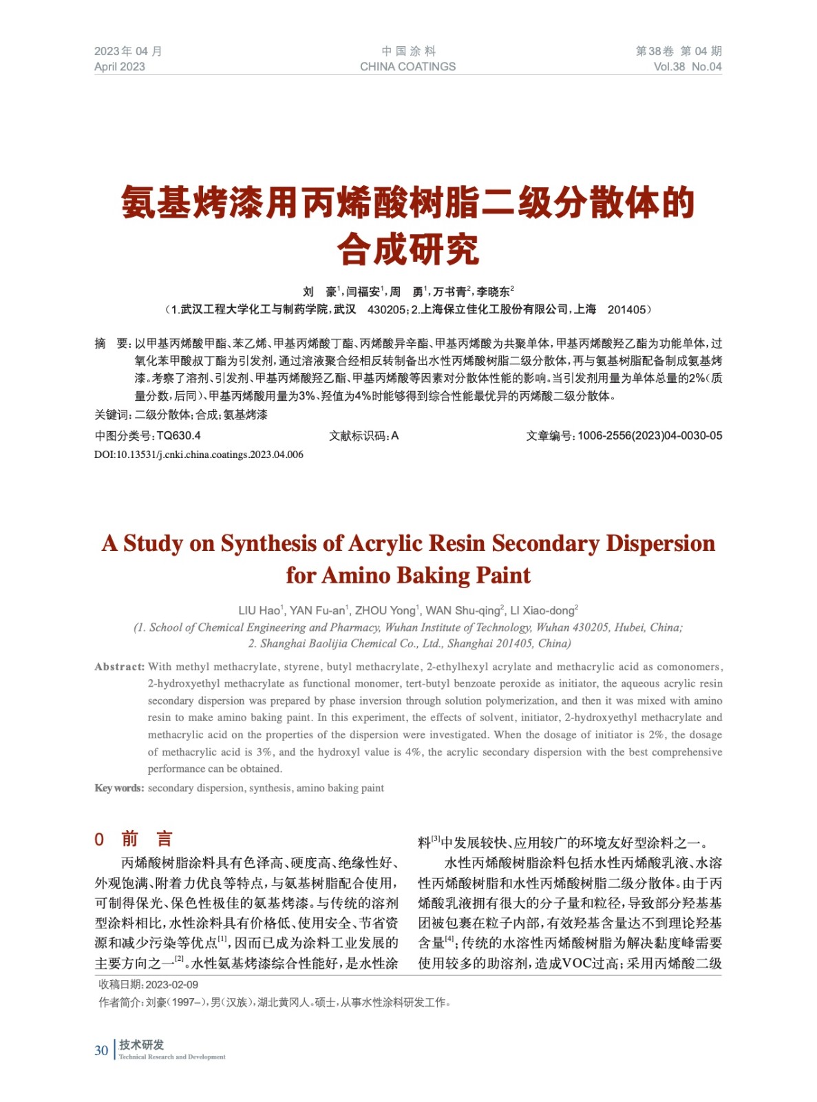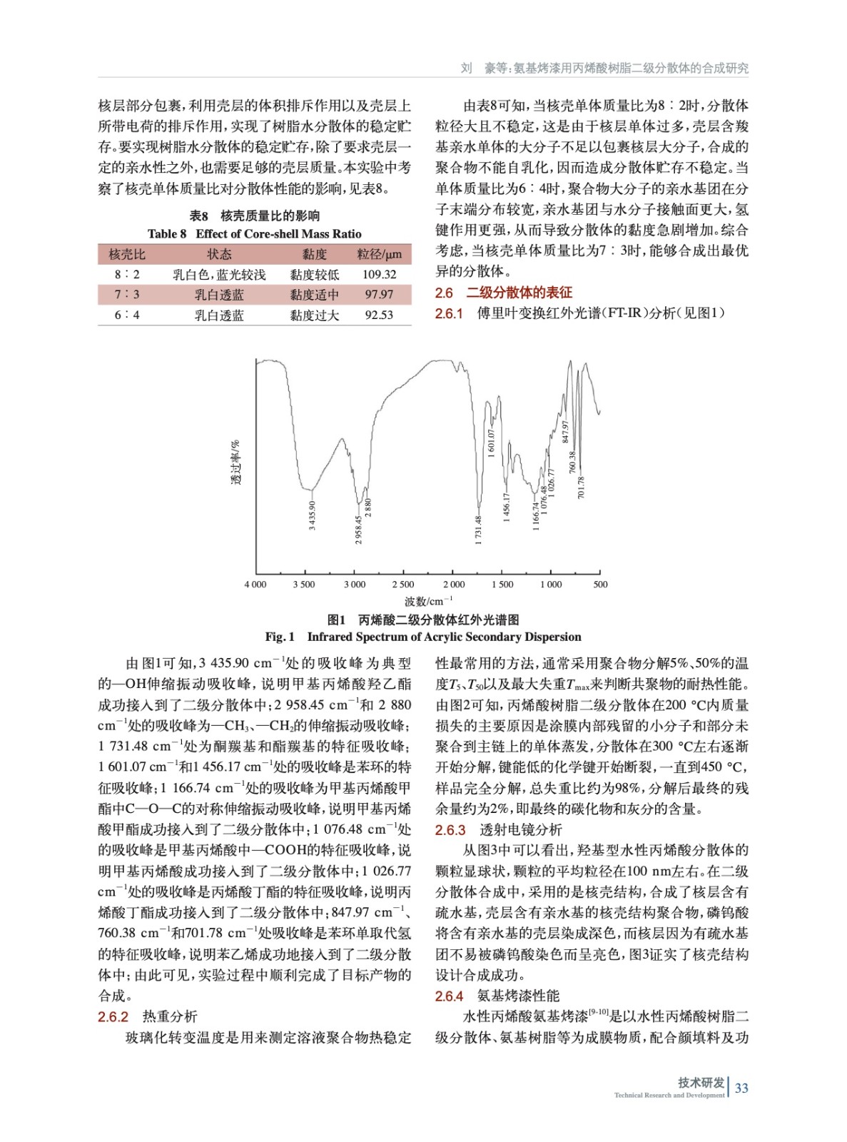 氨基烤漆用丙烯酸樹脂二級(jí)分散體的合成研究