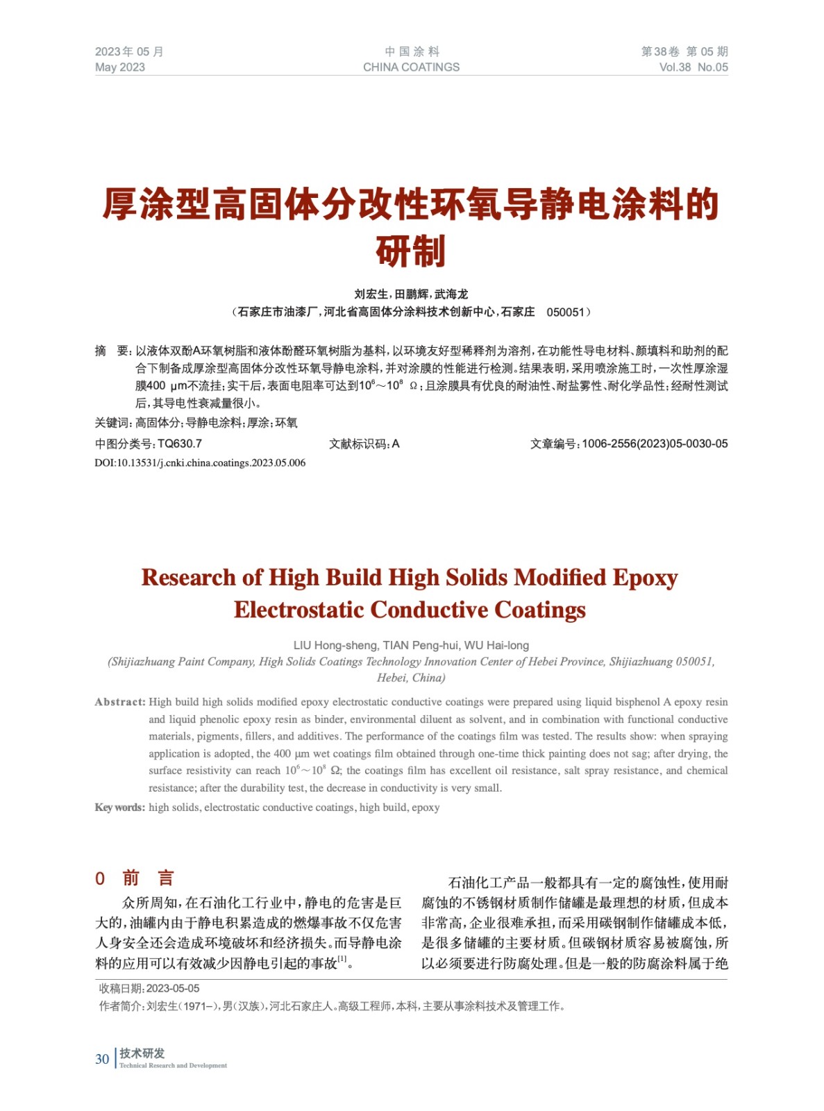 厚涂型高固體分改性環(huán)氧導(dǎo)靜電涂料的研制