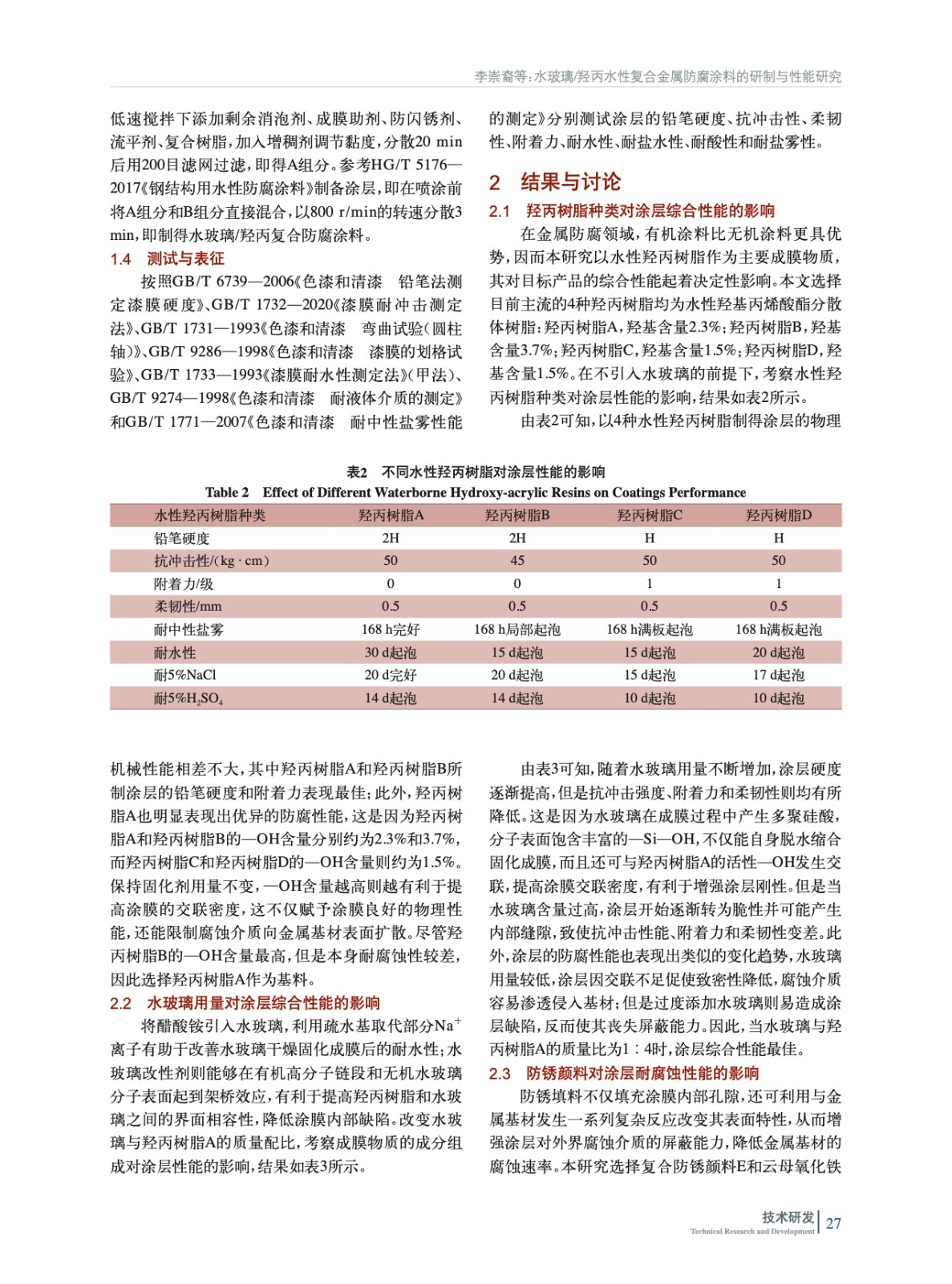 水玻璃/羥丙水性復(fù)合金屬防腐涂料的研制與性能研究