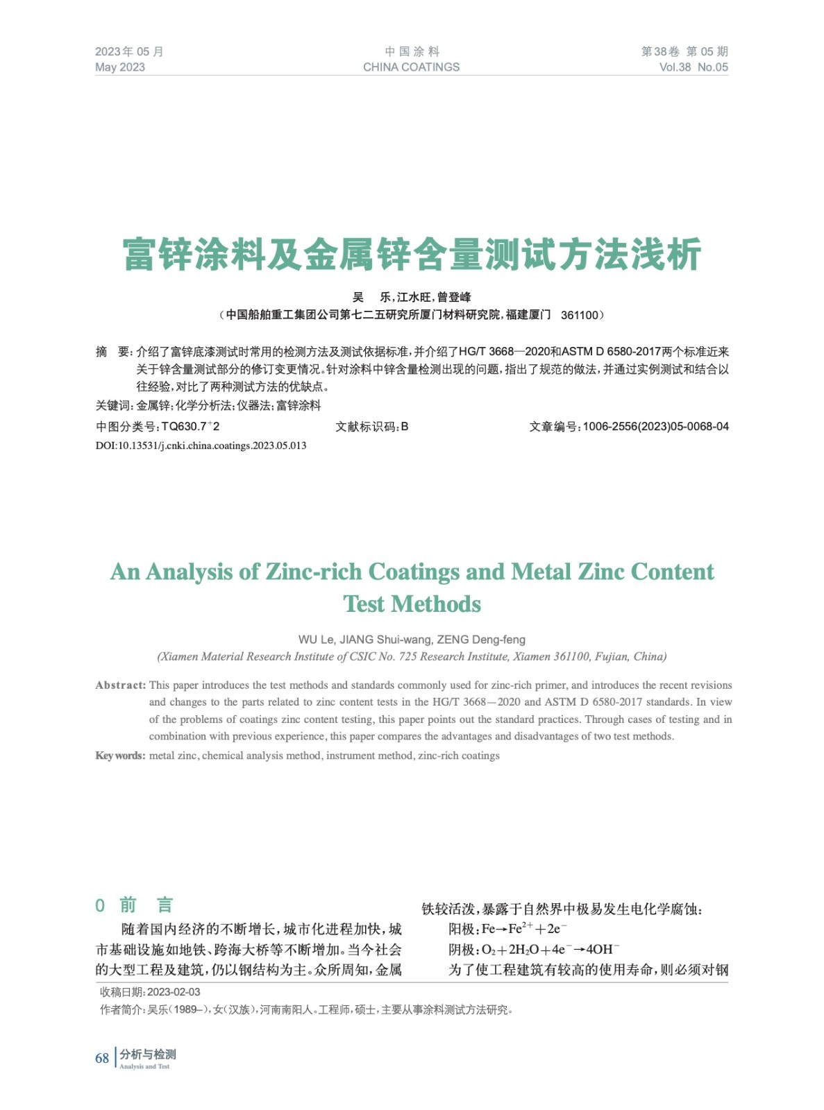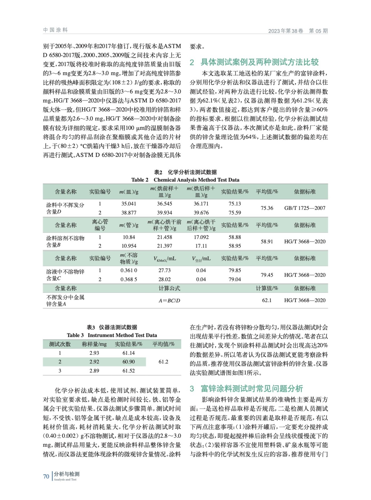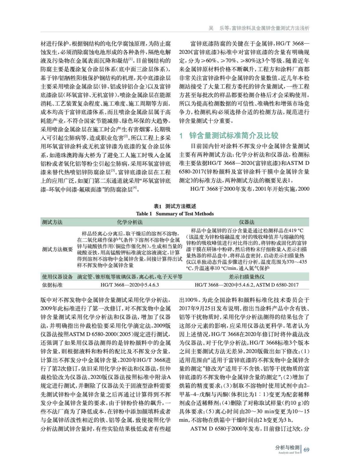 摘要:介紹了富鋅底漆測試時常用的檢測方法及測試依據(jù)標準,并介紹了HG/T 3668—2020和ASTM D 6580-2017兩個標準近來關于鋅含量測試部分的修訂變更情況。針對涂料中鋅含量檢測出現(xiàn)的問題,指出了規(guī)范的做法,并通過實例測試和結(jié)合以往經(jīng)驗,對比了兩種測試方法的優(yōu)缺點。
