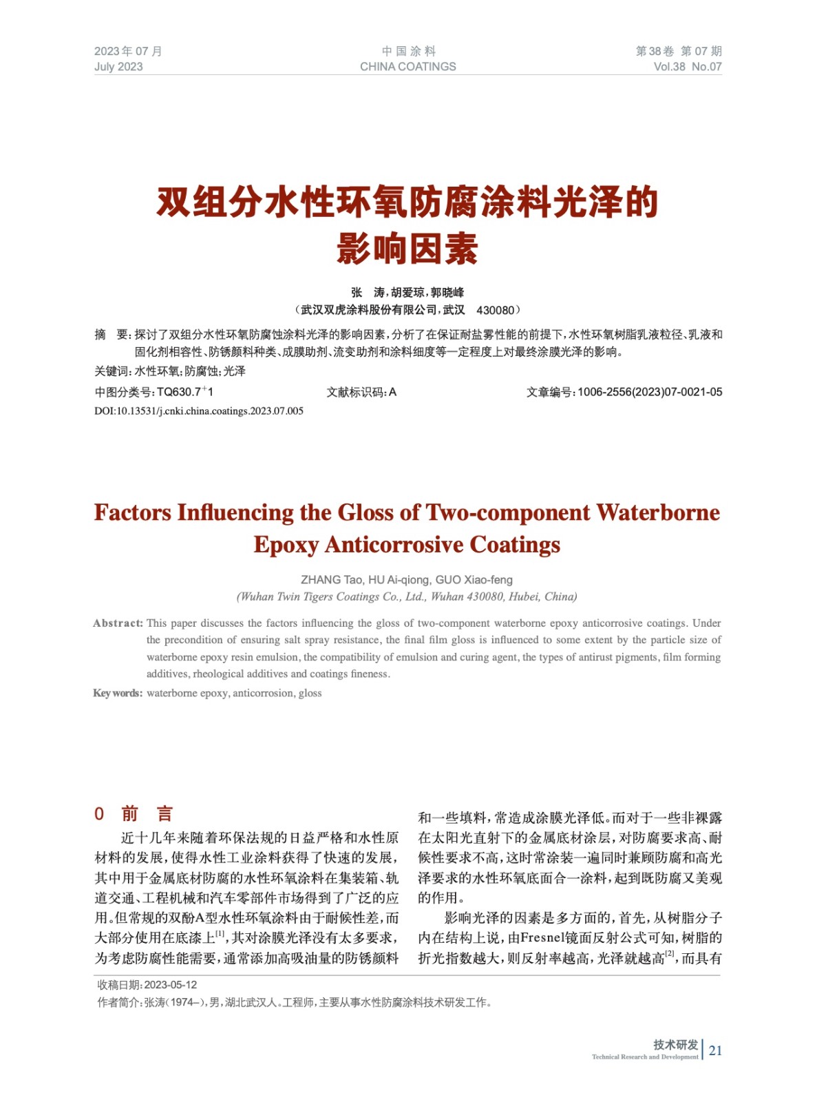 本文系作者@張 濤,胡愛瓊,郭曉峰 授權(quán)中國涂料網(wǎng)發(fā)表,并經(jīng)中國涂料網(wǎng)編輯,未經(jīng)允許不得轉(zhuǎn)載,如需轉(zhuǎn)載請聯(lián)系chinacoatingnet@vip.163.com