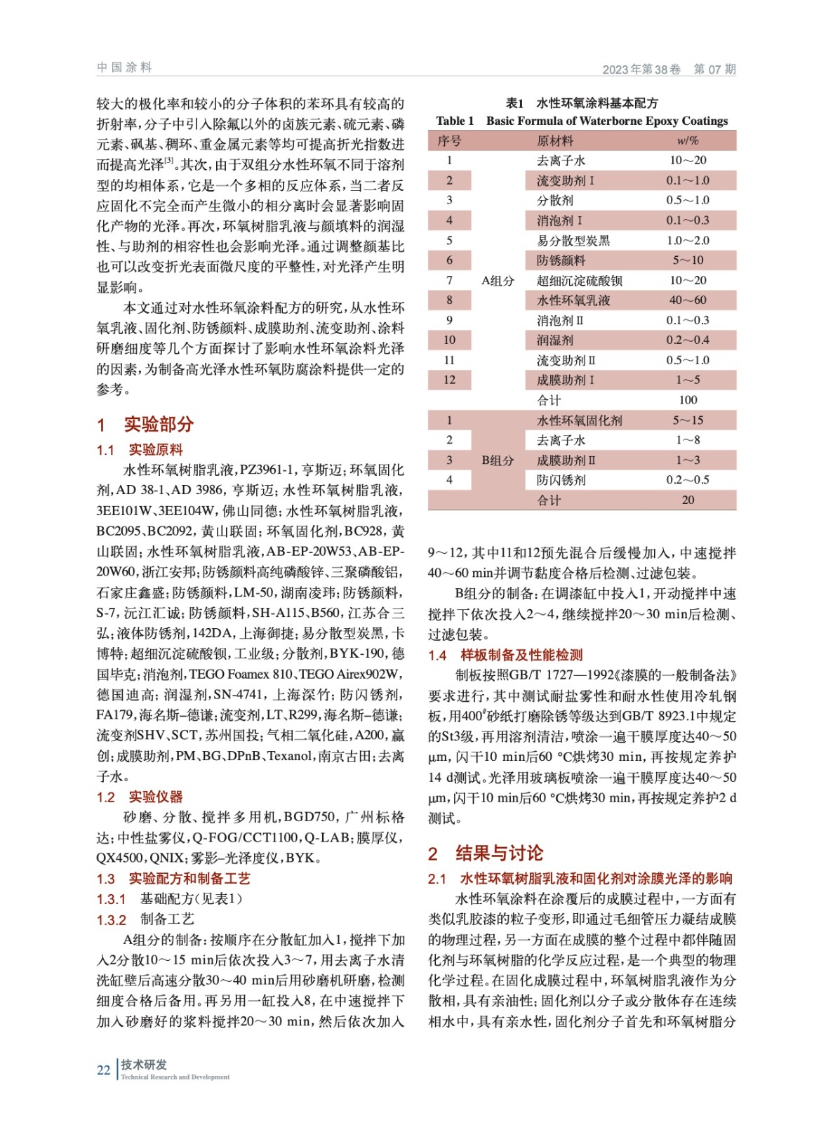 雙組分水性環(huán)氧防腐涂料光澤的影響因素