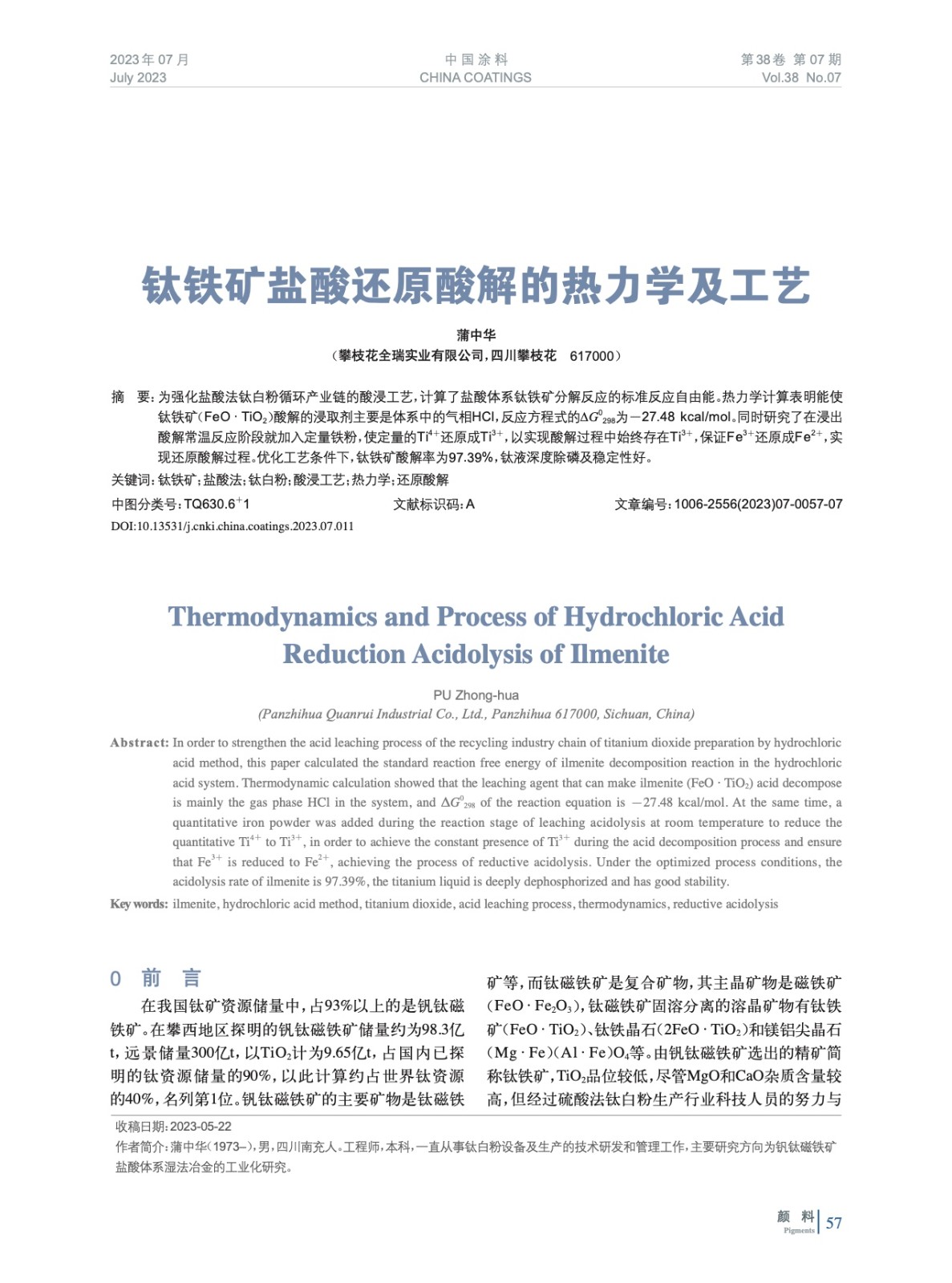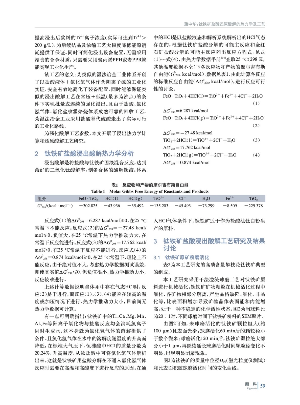 鈦鐵礦鹽酸還原酸解的熱力學(xué)及工藝