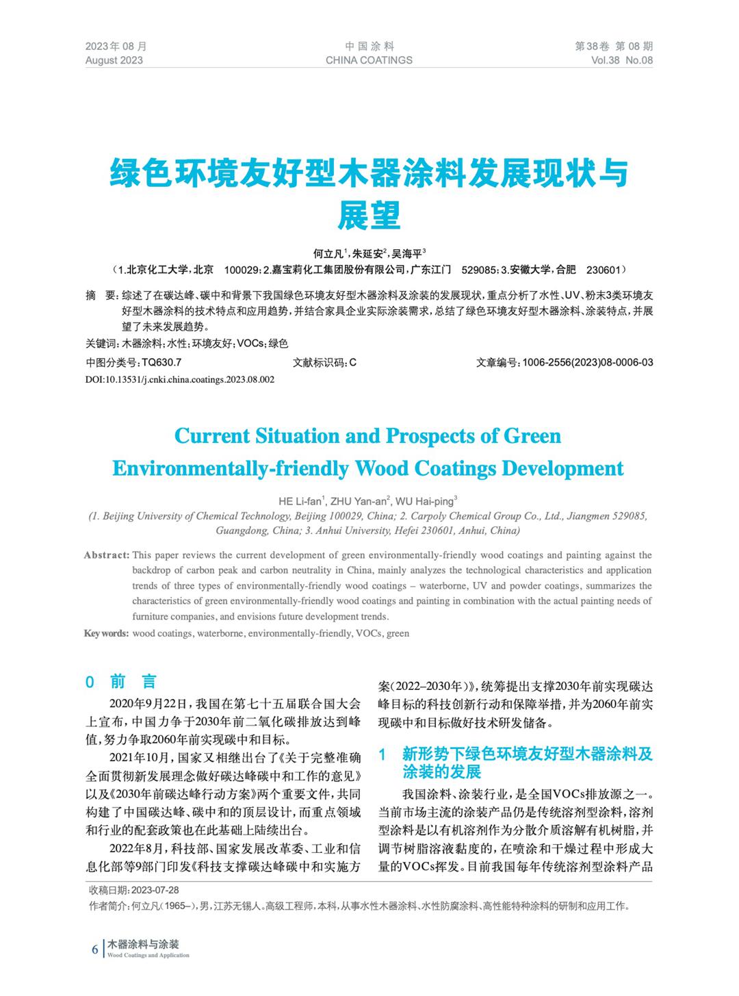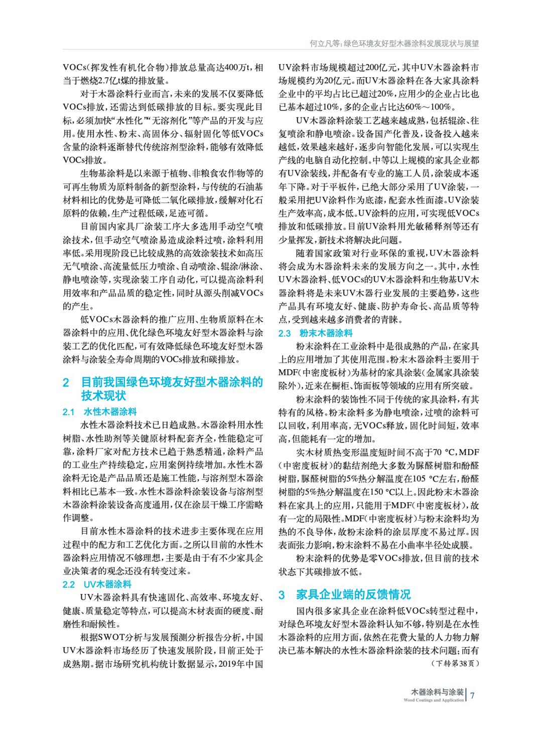 摘要:綜述了在碳達峰、碳中和背景下我國綠色環(huán)境友好型木器涂料及涂裝的發(fā)展現(xiàn)狀,重點分析了水性、UV、粉末3類環(huán)境友好型木器涂料的技術特點和應用趨勢,并結(jié)合家具企業(yè)實際涂裝需求,總結(jié)了綠色環(huán)境友好型木器涂料、涂裝特點,并展望了未來發(fā)展趨勢。
