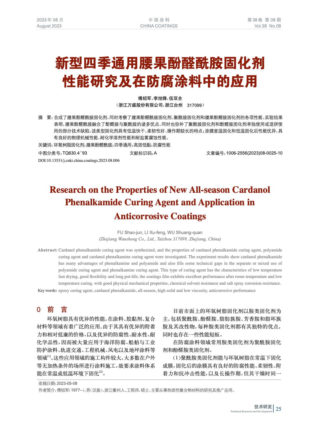 新型四季通用腰果酚醛酰胺固化劑性能研究及在防腐涂料中的應用
