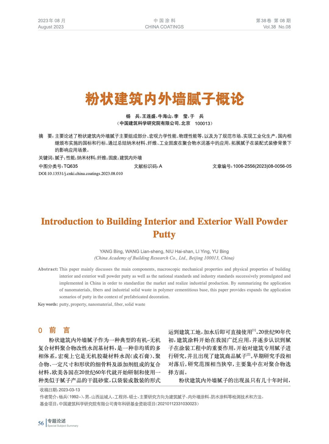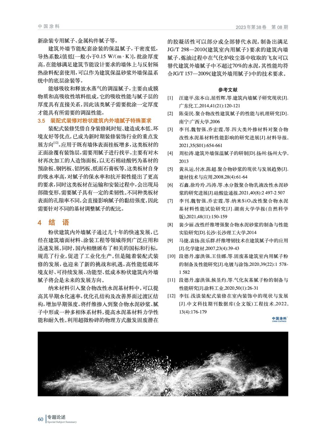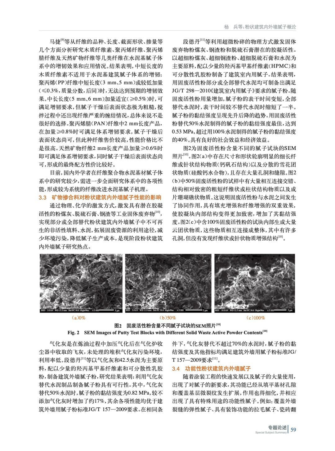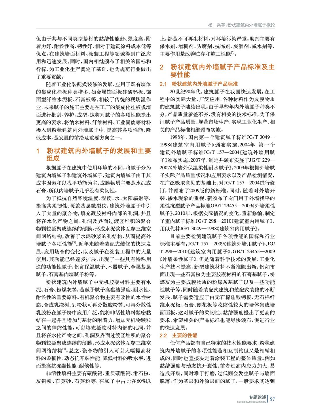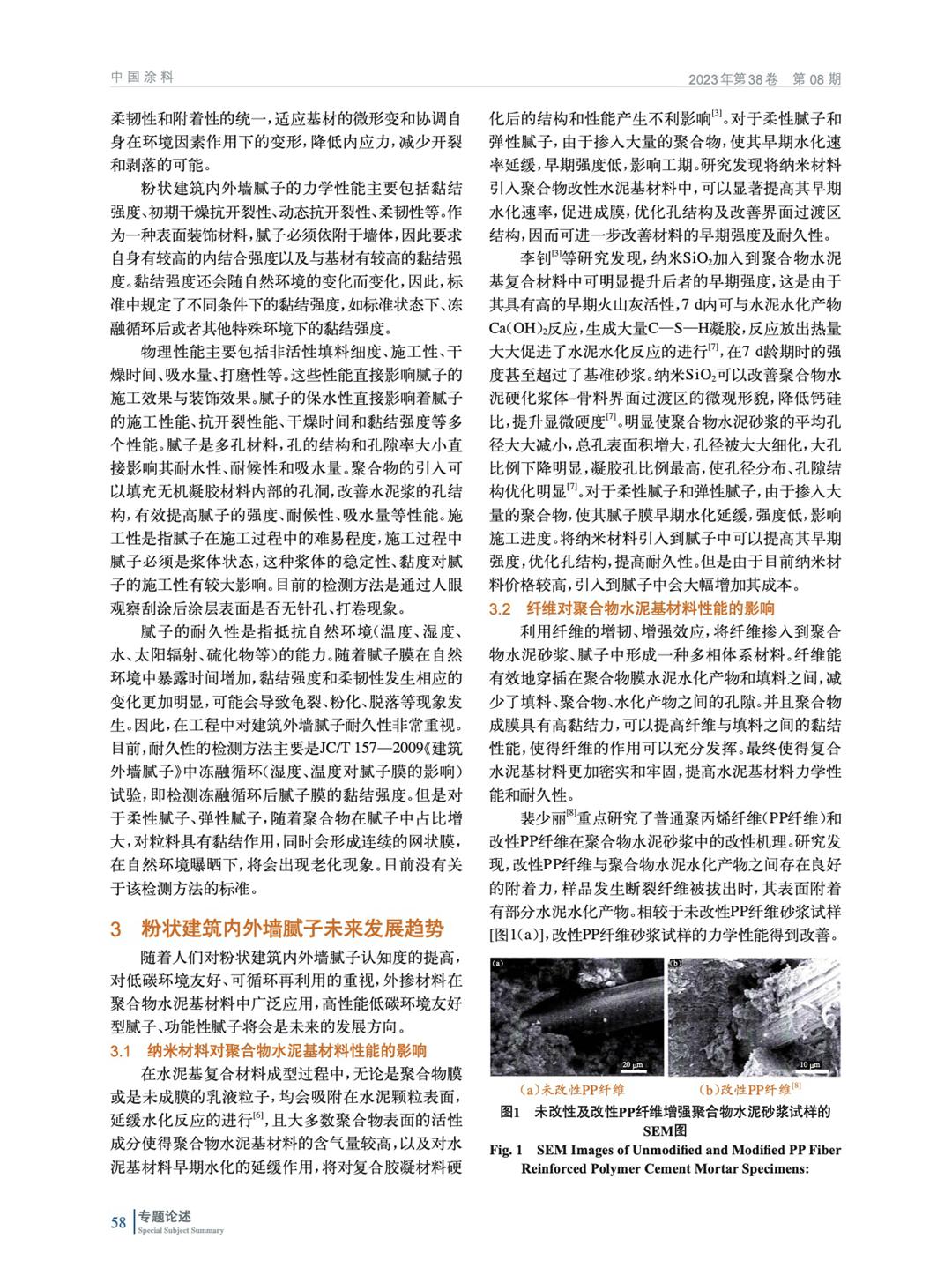摘要:主要論述了粉狀建筑內(nèi)外墻膩子主要組成部分、宏觀力學(xué)性能、物理性能等,以及為了規(guī)范市場、實現(xiàn)工業(yè)化生產(chǎn),國內(nèi)相繼頒布實施的國標(biāo)和行標(biāo)。通過總結(jié)納米材料、纖維、工業(yè)固廢在聚合物水泥基中的應(yīng)用,拓展膩子在裝配式裝修背景下的影響應(yīng)用場景。