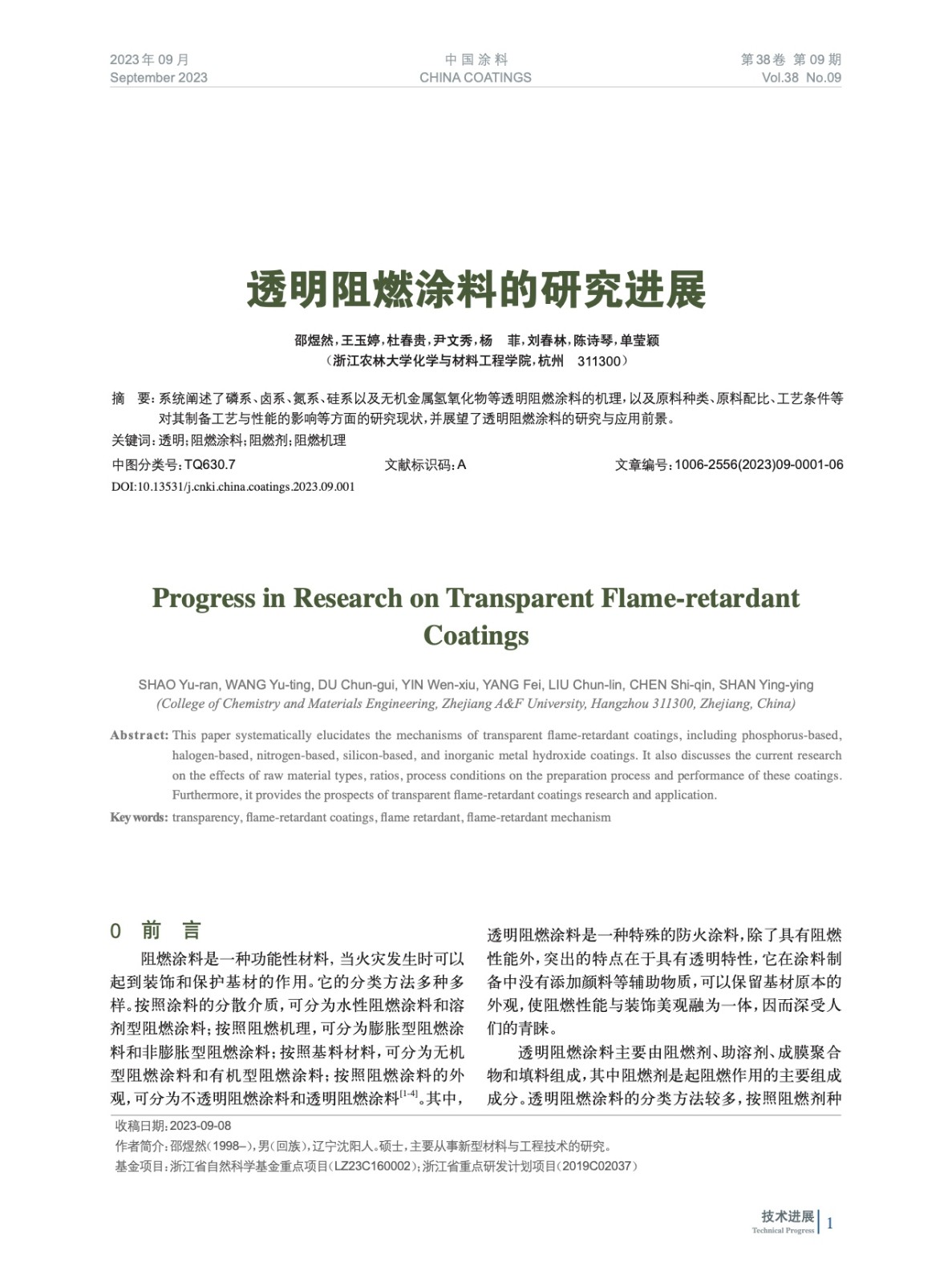 透明阻燃涂料的研究進(jìn)展