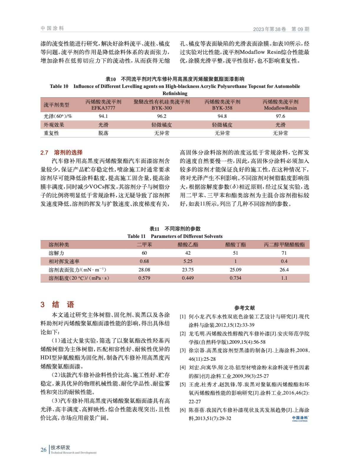 汽車修補(bǔ)用高黑度丙烯酸聚氨酯面漆的制備與性能