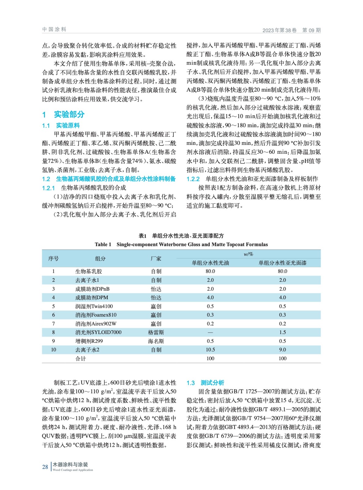 摘要:使用生物基單體合成核殼結(jié)構(gòu)型丙烯酸乳膠,研究生物基丙烯酸酯類單體在合成過程中的問題,研究其在單組分水性木器涂料中應(yīng)用上的性能差異。結(jié)果表明:隨著生物基含量的增加,其在消光性、滑爽度、耐水性等方面有提升,但在附著力方面略有影響。