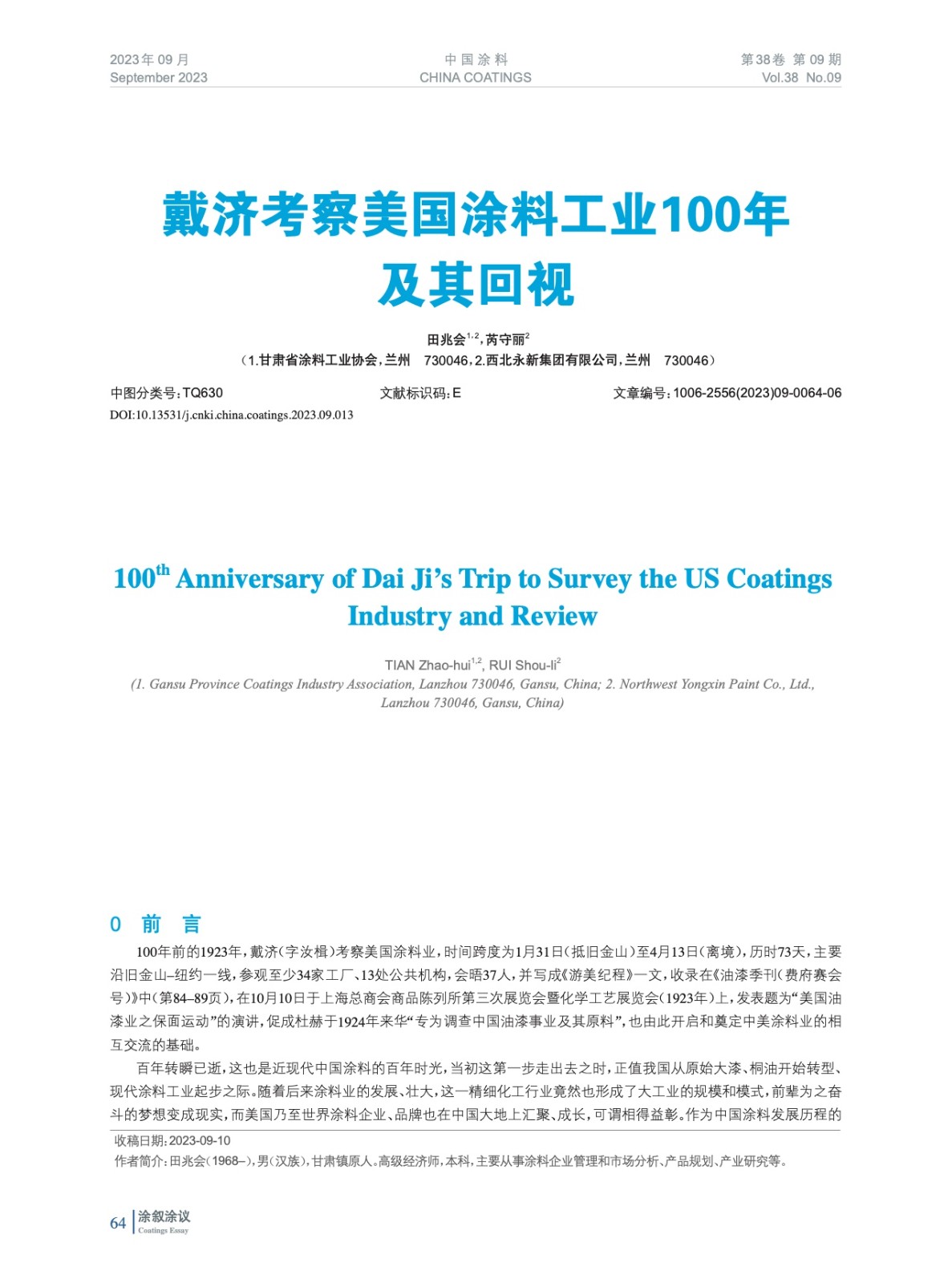 戴濟(jì)考察美國涂料工業(yè)100年及其回視