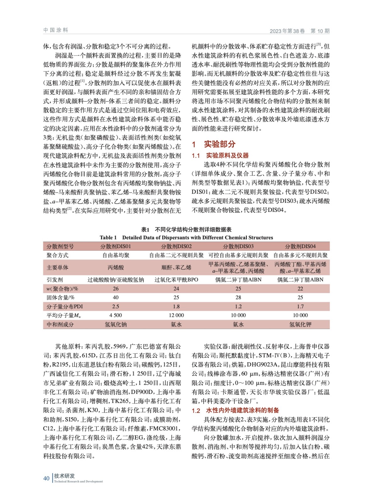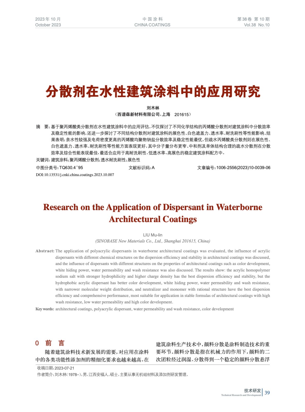 分散劑在水性建筑涂料中的應(yīng)用研究