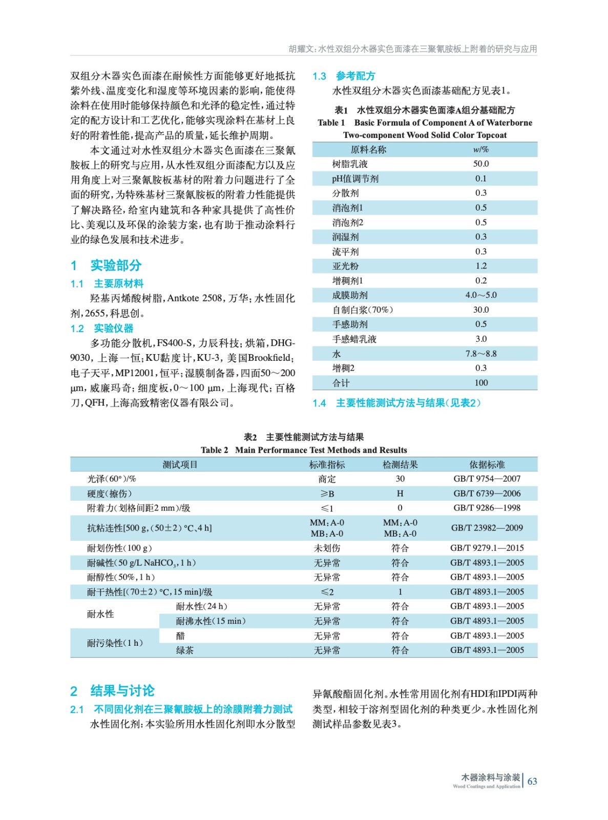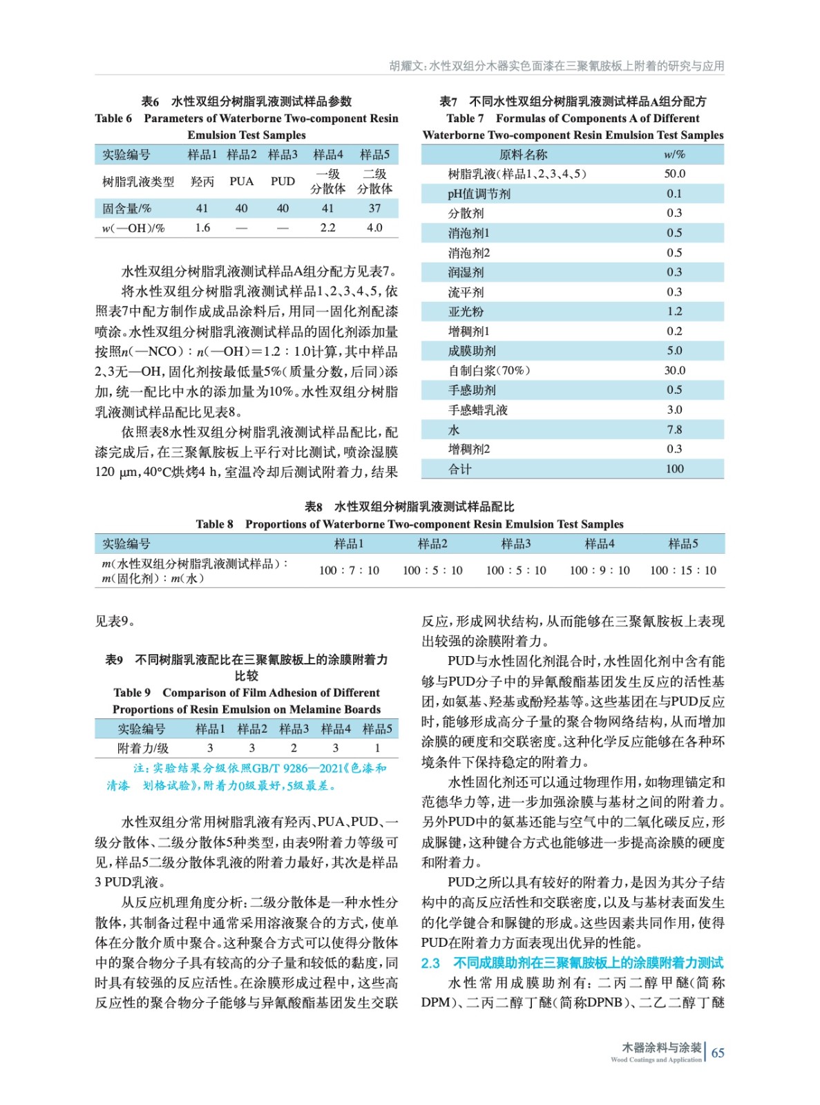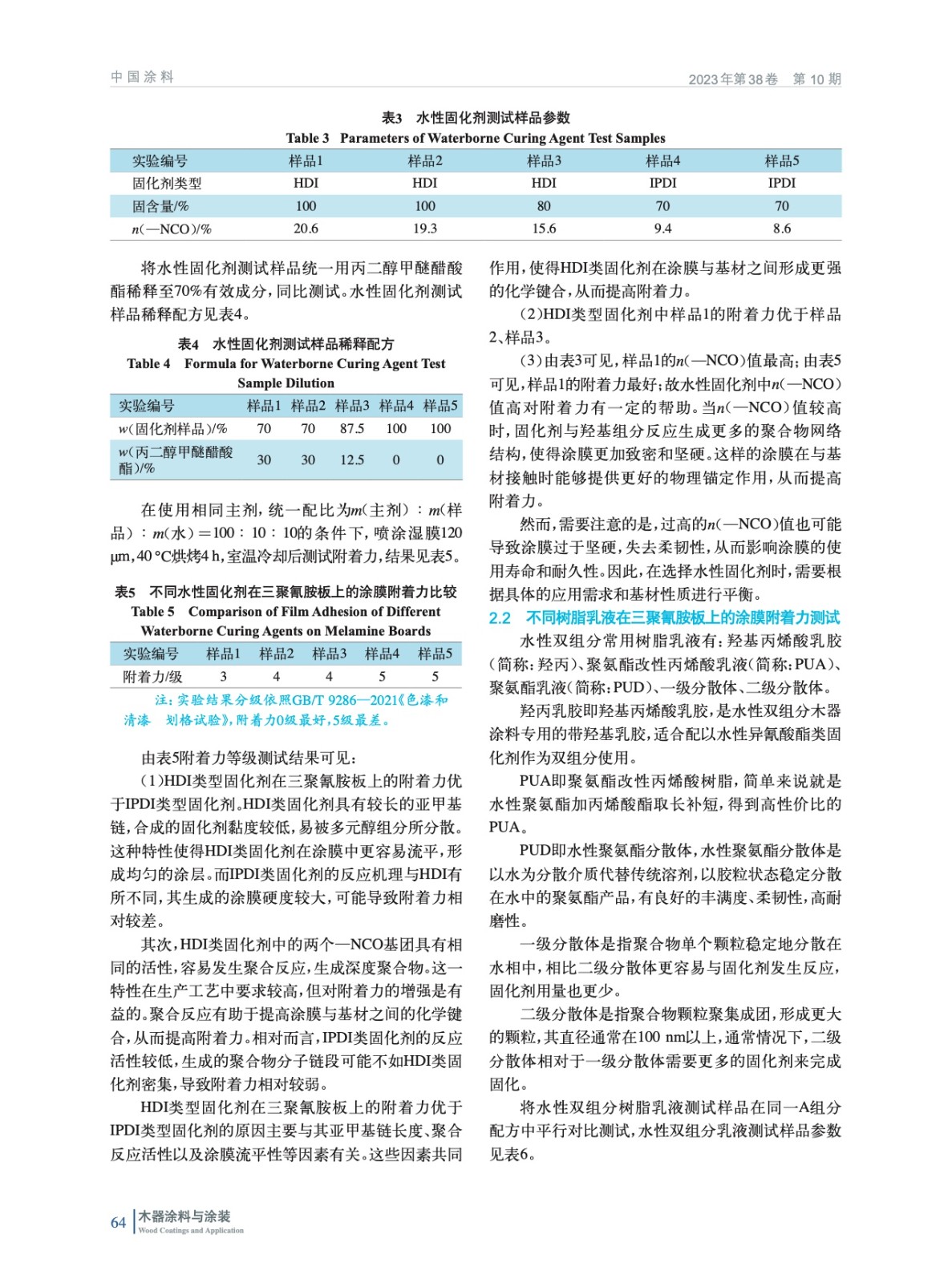 水性雙組分木器實色面漆在三聚氰胺板上附著的研究與應(yīng)用