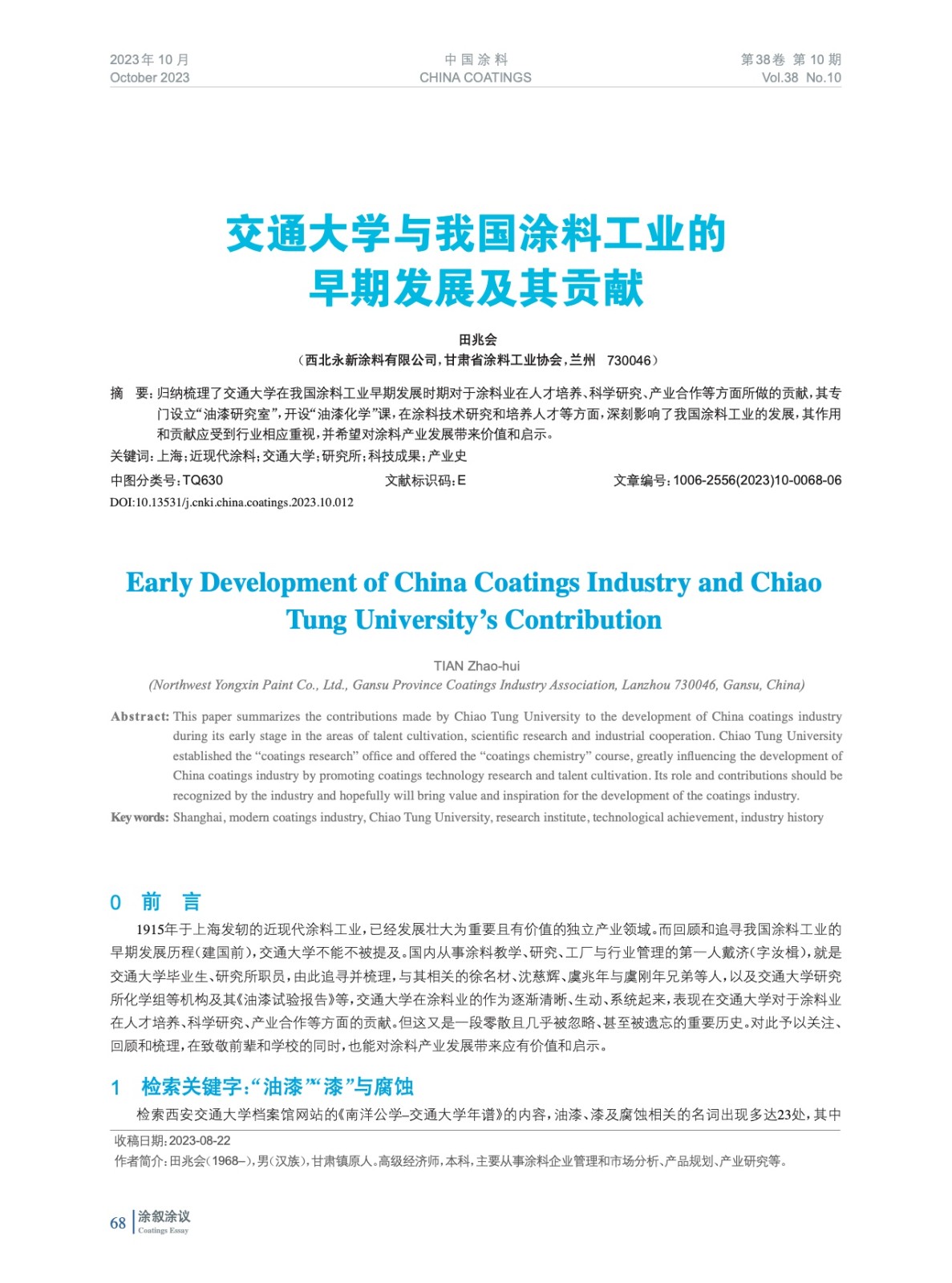 交通大學與我國涂料工業(yè)的早期發(fā)展及其貢獻