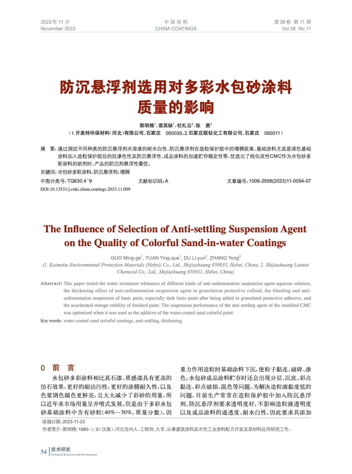 本文系作者@郭明格,袁英缺,杜禮云,張 勇 授權(quán)中國涂料網(wǎng)發(fā)表,并經(jīng)中國涂料網(wǎng)編輯,未經(jīng)允許不得轉(zhuǎn)載,如需轉(zhuǎn)載請聯(lián)系chinacoatingnet@vip.163.com